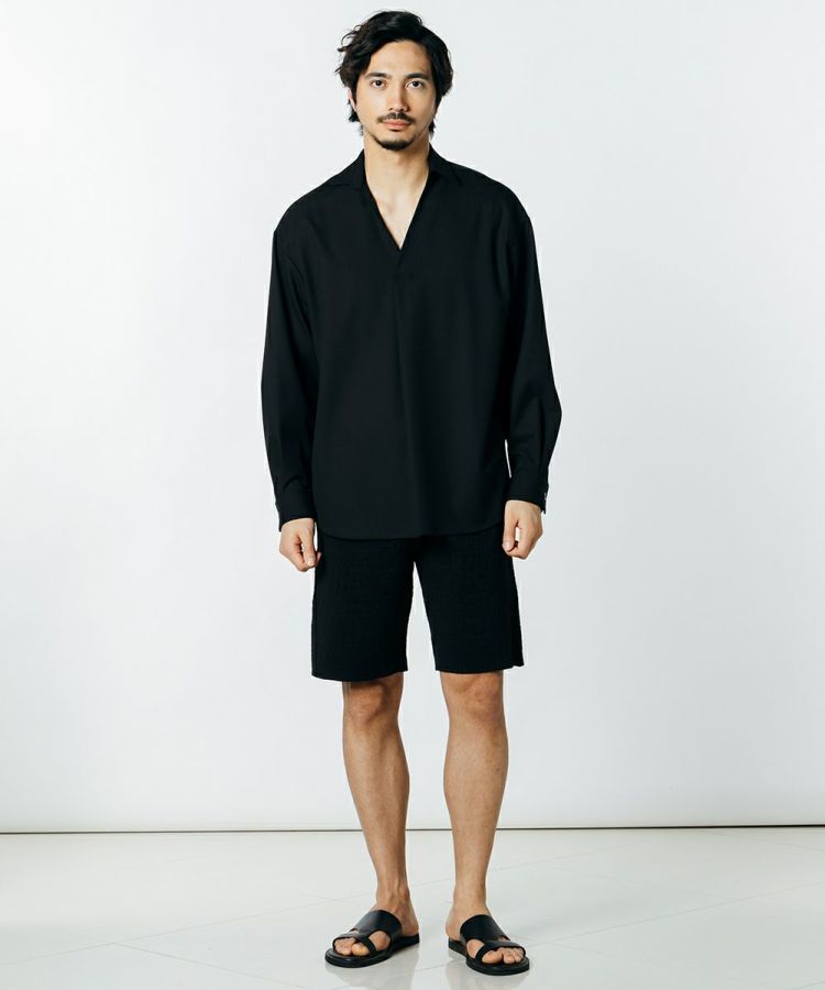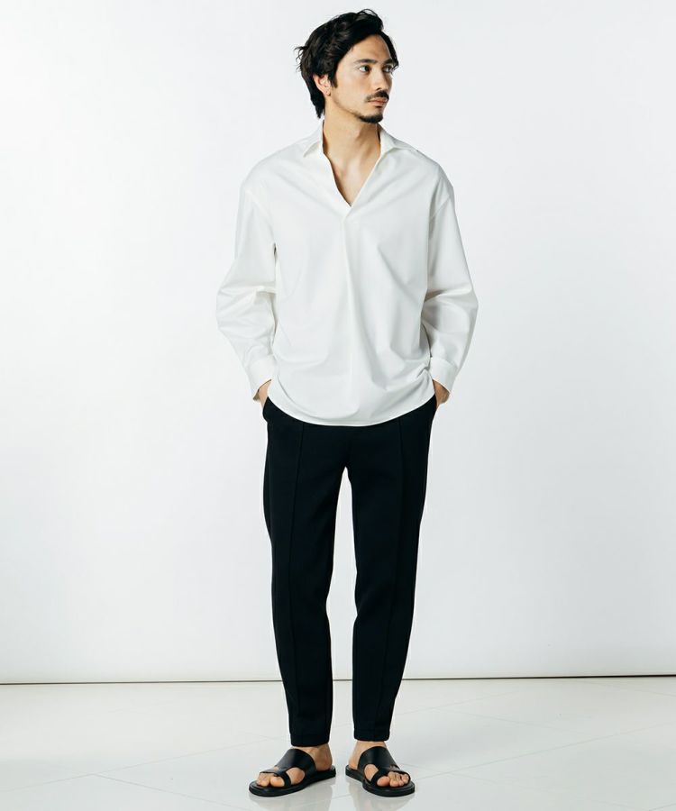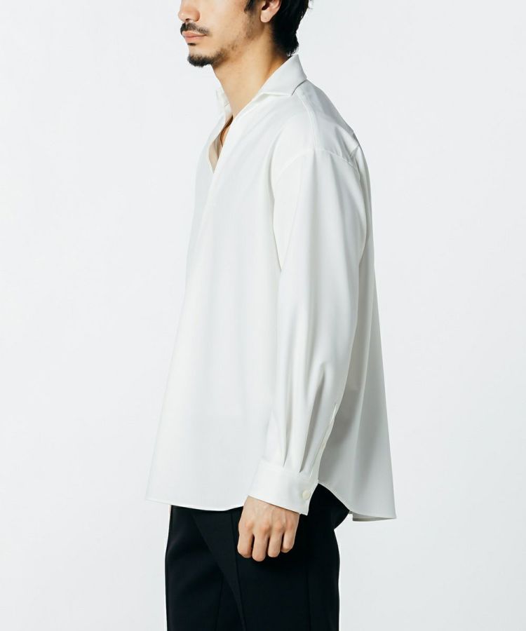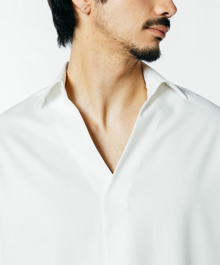 リラクシンでありながら、上品な印象を与えるスキッパーシャツ。VIS素材で世界トップクラスのクオリティを生み出す、ポルトガルのRIOPELE社のCERAMICA©生地を使用しています。ゆったりとしたリラクシンなシルエットながらも、スーパーファイン梳毛のような美しい表面感としなやかな風合いが優雅で、さらりとしたタッチは他に類を見ない完成度に仕上がりました。