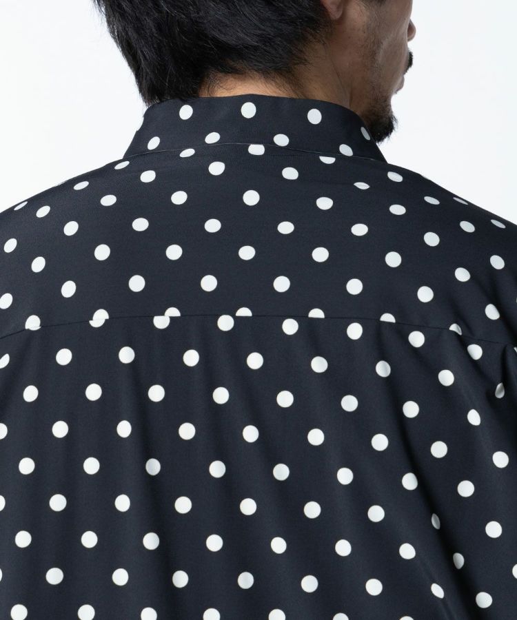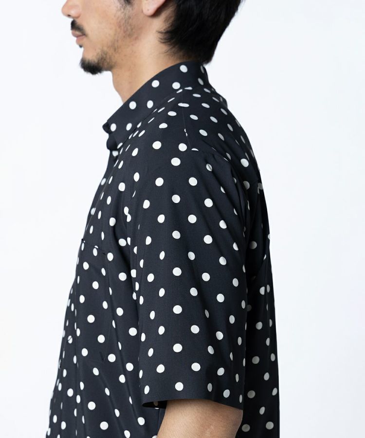 ポップでモダンな半袖シャツ。捺染のロータリーでプリントしたこだわりのドットプリントが特徴です。圧着の技法で縫製し、フラットな表面感を実現。また、帝人のウェーブローンという糸を使用しており、透けにくく、吸水性と速乾性に優れるなど機能性も抜群です。PU混のニット素材のため、ストレッチ性もあり動きやすいのもポイント。デイリーユースはもちろん、プールサイドでラッシュガード使いもOK!