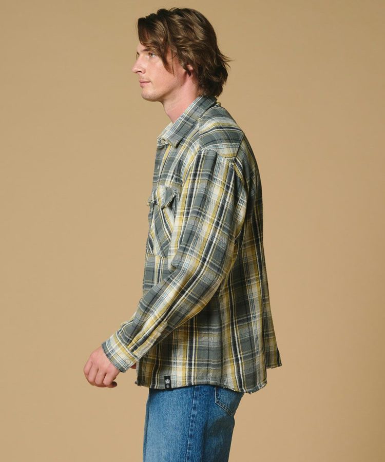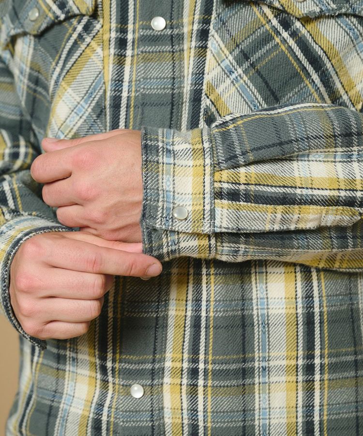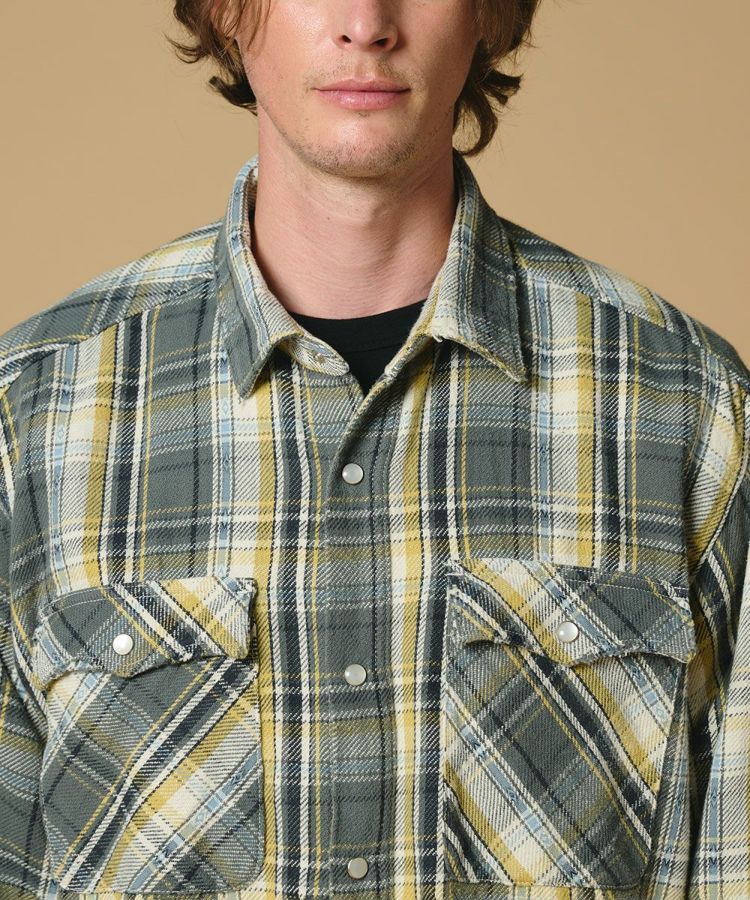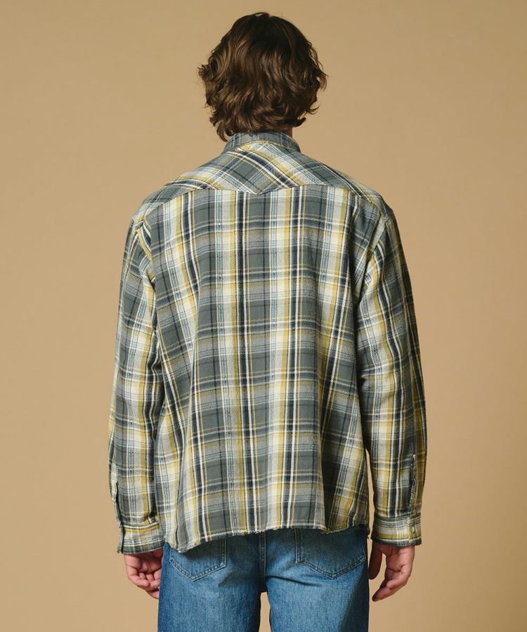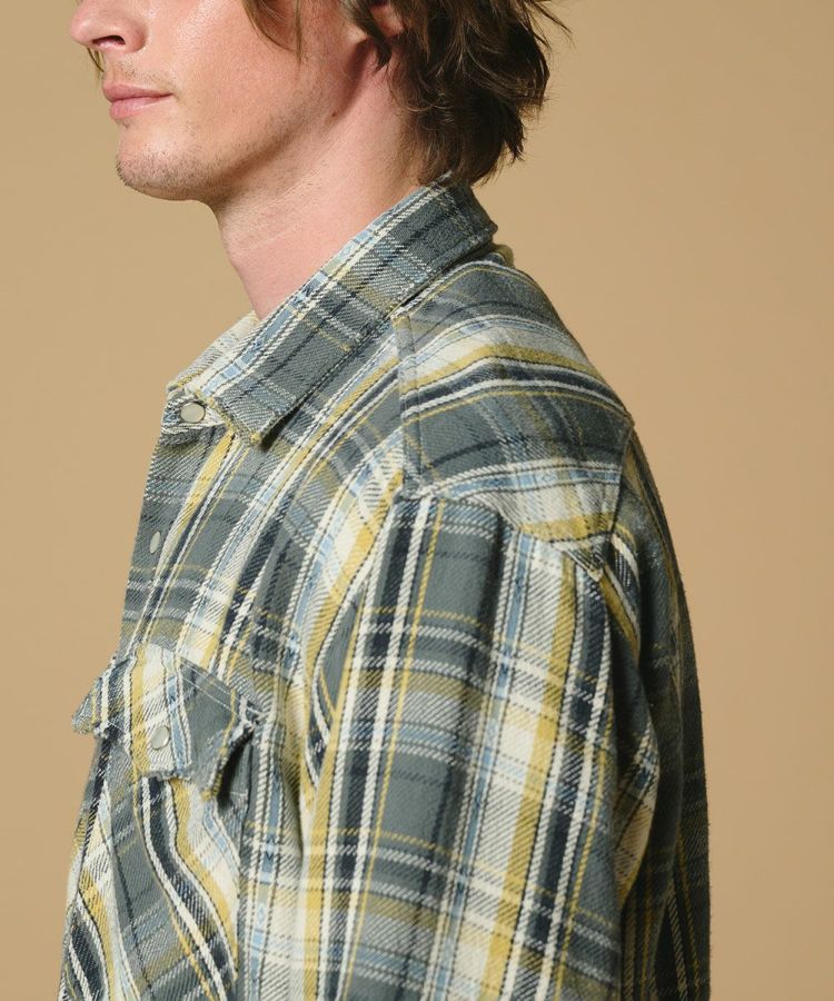柔らかくドライな風合いと、ざっくりとした肉厚感が魅力のチェックシャツ。ドビー織りのアクセントを効かせることで、ヴィンテージ生地のような表情豊かなパターンに仕上げました。ゆったりとしたシルエットがリラックス感を演出。Tシャツの上に羽織るラフなスタイルから、一枚でさらりと着るシンプルコーデまで幅広く活躍します。