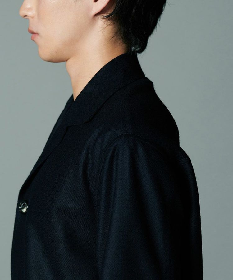 柔らかで暖かなフラノウールを用いたブルゾン。縫い代のない溶着シームレス縫製を用いることにより、一枚布で作られたような美しいドレープが出るのが特徴です。裁ち切り部分は特殊なレーザーカットマシーンで裁断することで、エッジの厚みや硬さを軽減。軽やかな着心地と上品なルックスを実現した一着です。