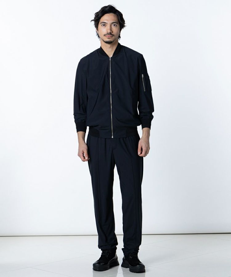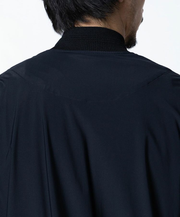 薄く、軽やかな素材を使用した夏用のブルゾン。身体の動きを邪魔しない、適度なストレッチ性があります。さらりとした心地良い肌触りでありながら、接触冷感や紫外線防止機能を兼ね備えているのがポイント。襟や袖、裾がリブ仕様になっているためカジュアルになりすぎず、きれいめに着られるのも魅力です。