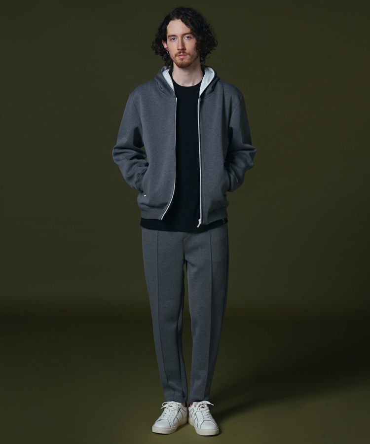なめらかな表面感と独特の膨らみ感が特徴の、ダンボールニットで作ったパーカー。Tシャツに合わせてもカジュアルになりすぎず、きれいめに着られるのが魅力です。袖先には「H」の刺繍を施し、さりげないアクセントに。程よいコンパクトなサイズと肉厚すぎない薄さなので、着まわし力も抜群です。