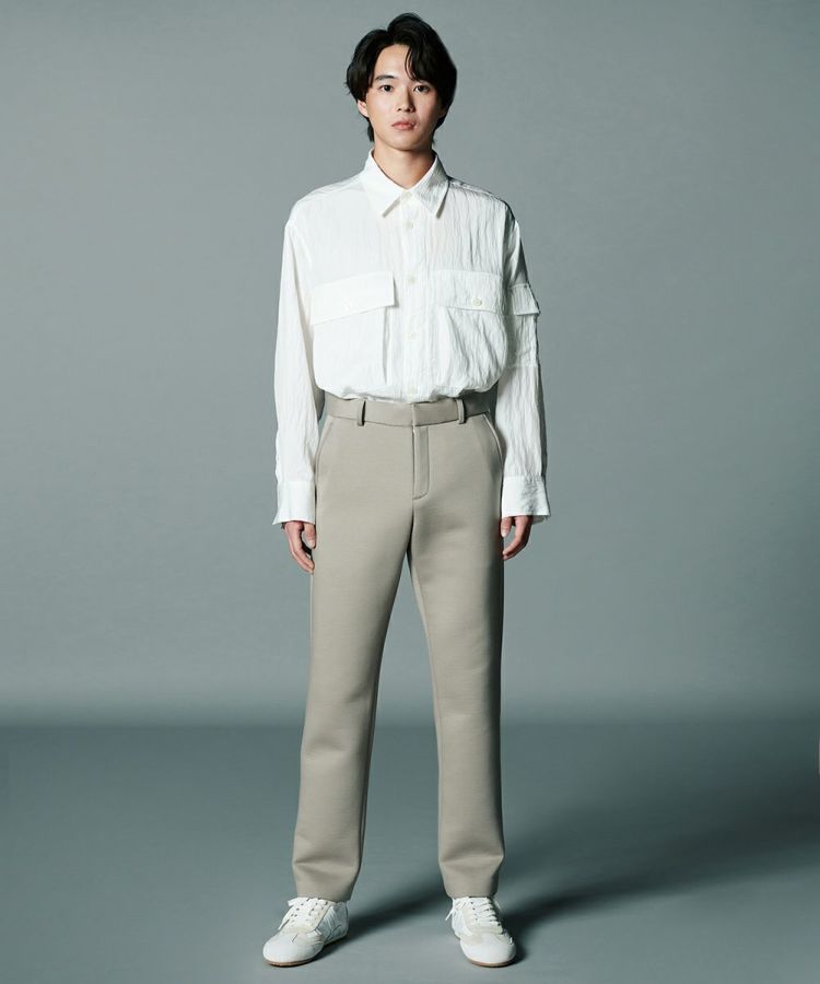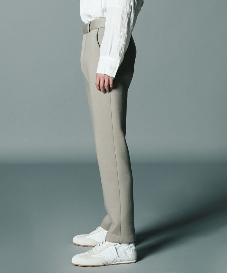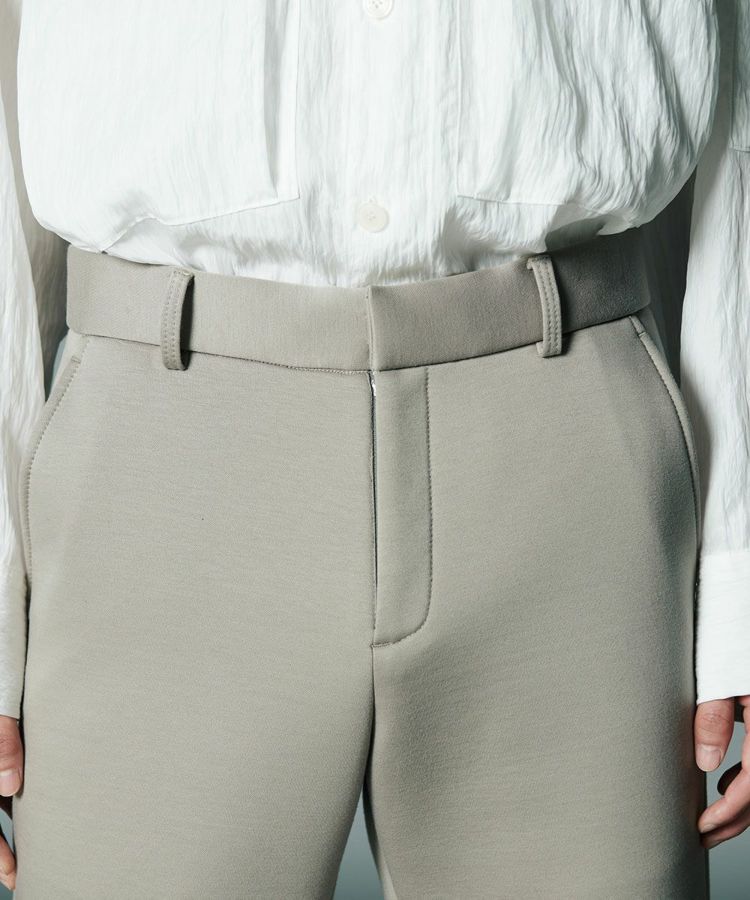 先染めにより最高度のふくらみを表現した、ダンボール素材のパンツ。使い勝手の良いストレートシルエットで、程よいサイズ感が大人っぽいこなれ感を演出します。28Gの編み機を使用した本格的な素材ながらも、驚くほど軽量で、イージーな穿き心地なのもポイント。着まわし力抜群にも優れた一本です。