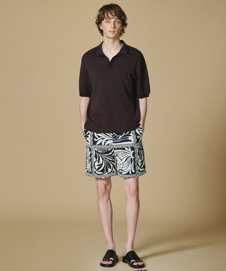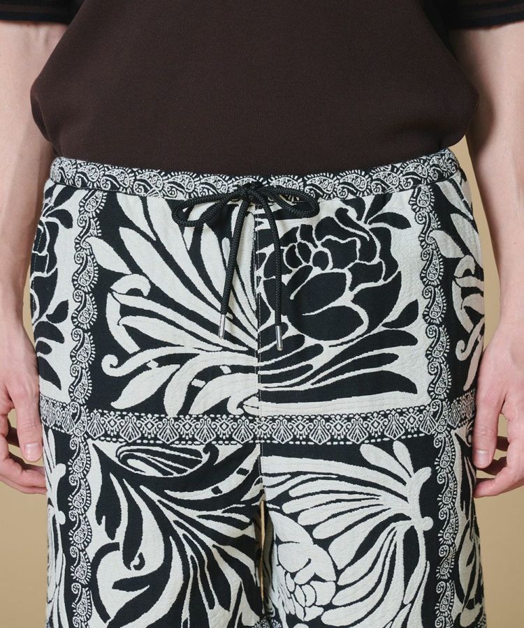 フランス・DEVEAUX社のジャカード素材を使用したショートパンツ。全面に配したモノトーンのペイズリー柄が、程よくリゾート感のあるムードを演出します。コットンベースならではのナチュラルな風合いも魅力。大人のリラックススタイルを品よく楽しめる一着です。