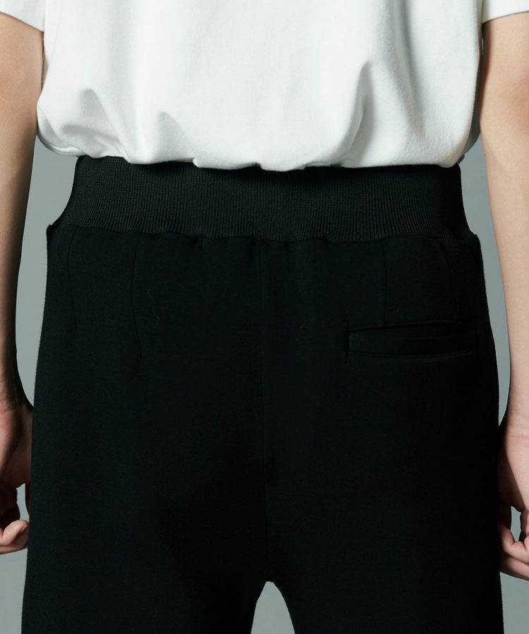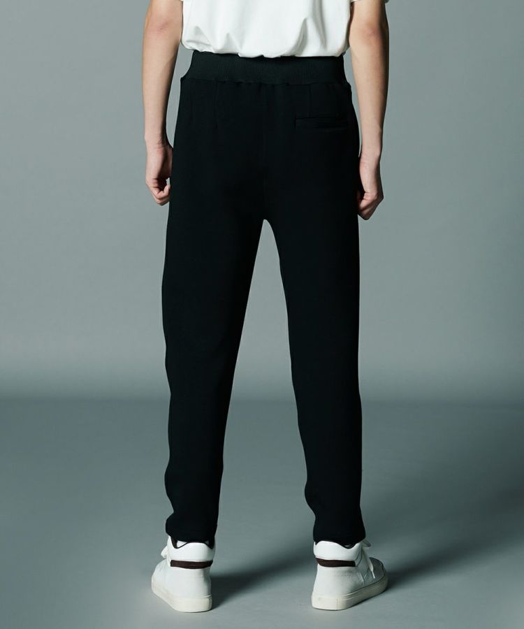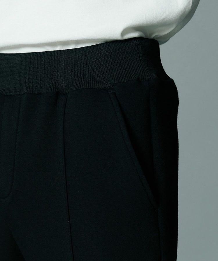 しっかりとした落ち感のあるダンボール生地を使用したパンツ。ウエストゴムで着脱が楽チンなだけでなく、ダンボールニットの心地良い穿き心地と軽やかさが魅力です。ポイントは、すっきりとした細めシルエット。センタープレスのデザインが縦のラインを出し、リラクシンな穿き心地ながらもスタイリッシュな佇まいを叶えてくれます。