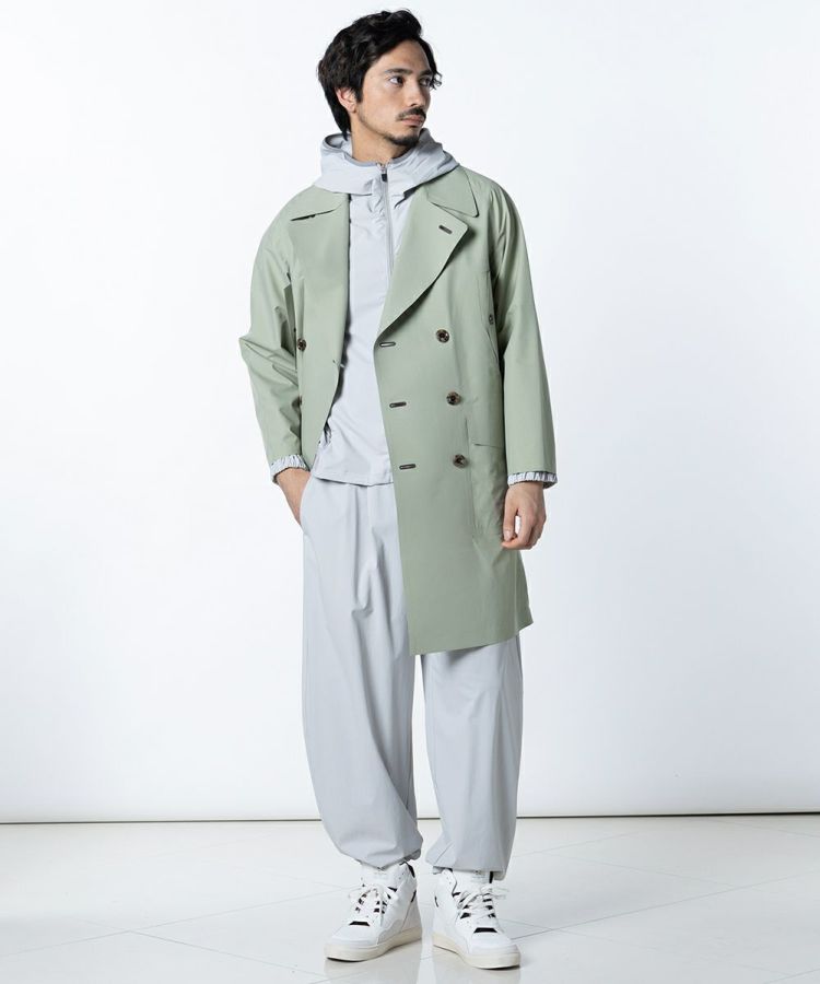 防風性と撥水性を備えた素材に、暖かく蒸れにくいメッシュ裏地を組み合わせた、汎用性の高いシェルアウター。優れた機能性で一年を通して着用できる軽量なアウターを、タウンユースでスタイリッシュに着こなせるコートタイプにしました。合わせるコーディネートを選ばないセミロング丈や、ゆったりとした身幅なのもうれしいポイントです。