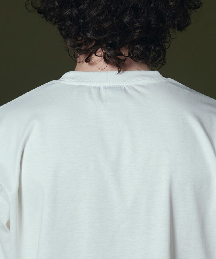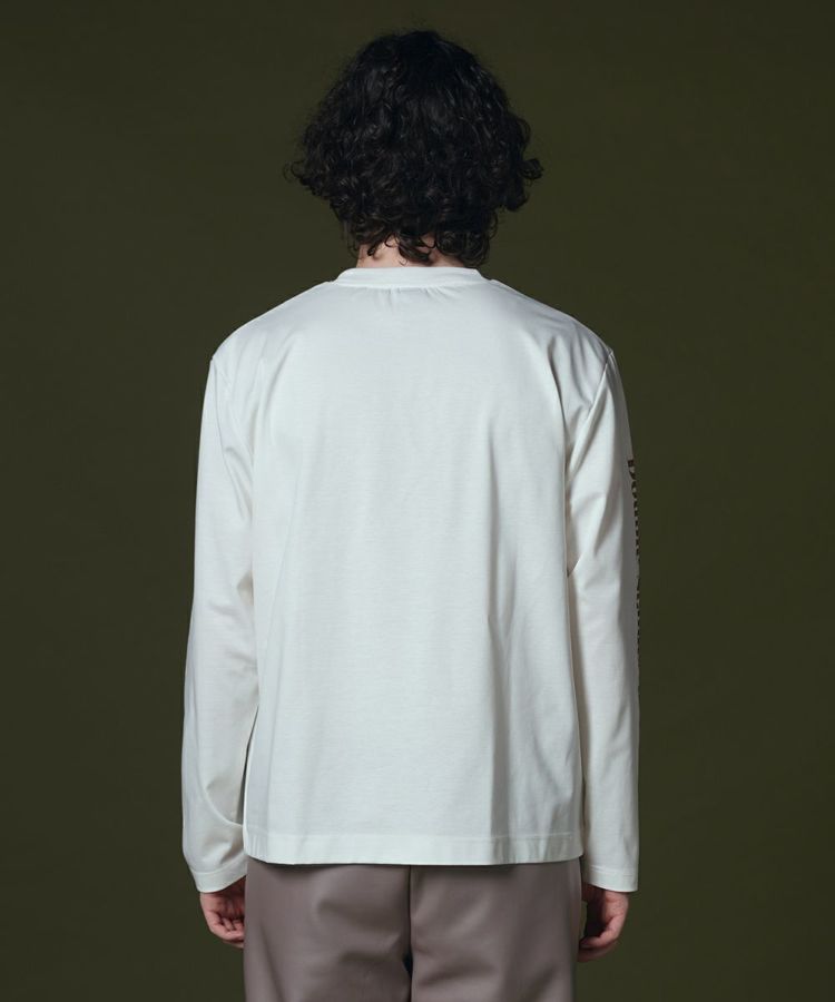 スーピマコットン100%で肌当たりの良いロングスリーブTシャツ。接触冷感機能とUV機能付きなのも嬉しいポイント。大きすぎずタイトすぎないサイズで着まわし力に優れています。また、丈が長すぎないためカジュアルになりすぎず、きれいめに着られます。グラデーションで表現したプリントは、フロントだけでなく右腕にも施し、デザイン性を高めています。Love what you do.のメッセージがさりげなくもかっこいい。