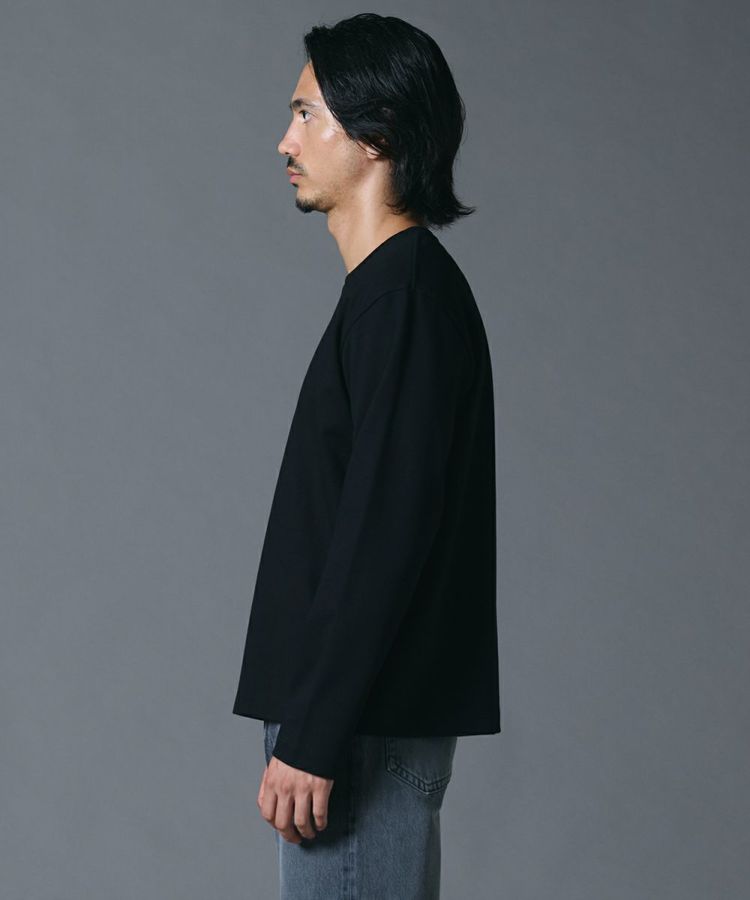 肉厚ながらも軽やかな着心地のロングTシャツ。脇ハギをなくしたストレスフリーな設計で、長時間の着用も快適です。シンプルなデザインに加え、バックにはセンターラインをあしらいさりげないアクセントをプラス。デニムと合わせたシンプルスタイルはもちろん、レイヤードのインナー使いにもぴったりな一枚です。