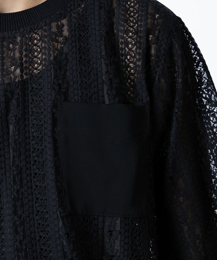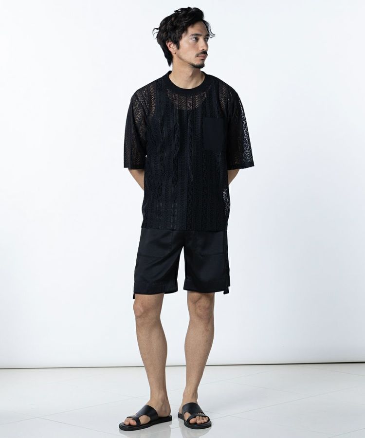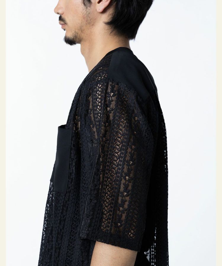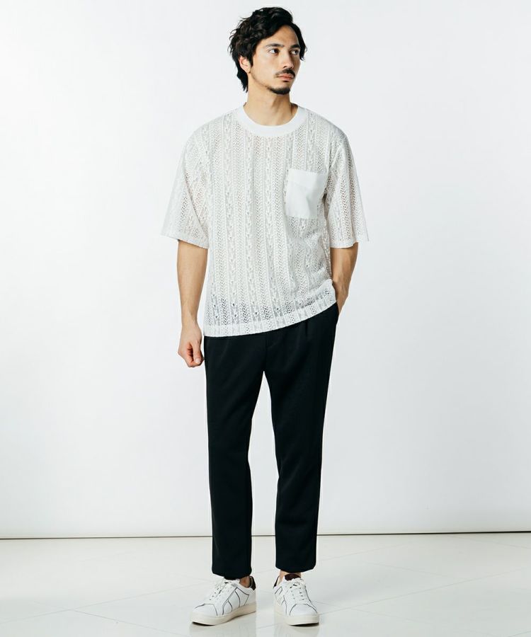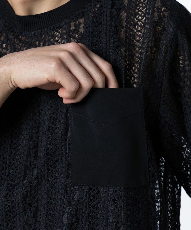 日本産のラッセルレースを使用した、ゆったりとしたサイズのTシャツ。ポケットがさりげないポイントになり、カジュアルな印象を与えます。ポケットだけでなく、リブに無地の切り替えを施しているのもポイント。派手すぎず、大人カジュアルなスタイルを叶えてくれる絶妙なデザインが魅力です。家庭用洗濯機でお手入れできるのもうれしい。