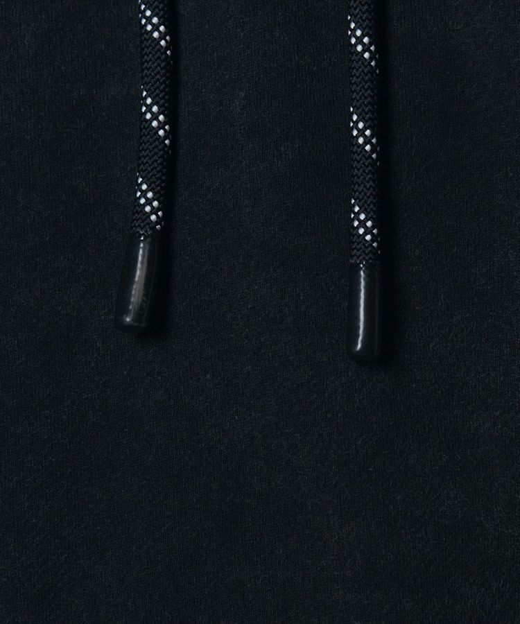 30/10の裏毛を顔料で染色し、ケミカルウォッシュ加工を施したパーカー。ハードな加工により縦横にかなりの縮みが発生し、他にはないユニークなボリューム感があります。着用するとしっかり暖かく、オーバーサイズが全身のコーディネートにメリハリを付けてくれるのも魅力。また、オリジナルのサークルロゴと極太のスピンドルがアクセントになっています。同素材のショートパンツ(型番:0706111244)とセットアップで楽しむのもおすすめ。