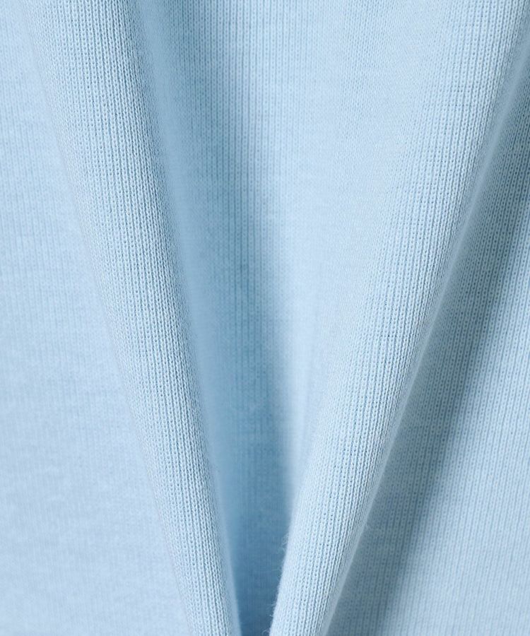 トレンド感のあるショート丈に、ヴィンテージライクなロゴをあしらったTシャツ。糸設計と編み技術にこだわり、強撚糸ながら斜行を抑えたオリジナル素材を使用しました。さらに特殊シルケット加工を施すことで、ほどよいハリ感と毛羽のないクリアな表情を実現。ベーシックで着回しやすいオフホワイトと、爽やかな印象のサックスブルーの2色展開で、デイリーに活躍する一着です。