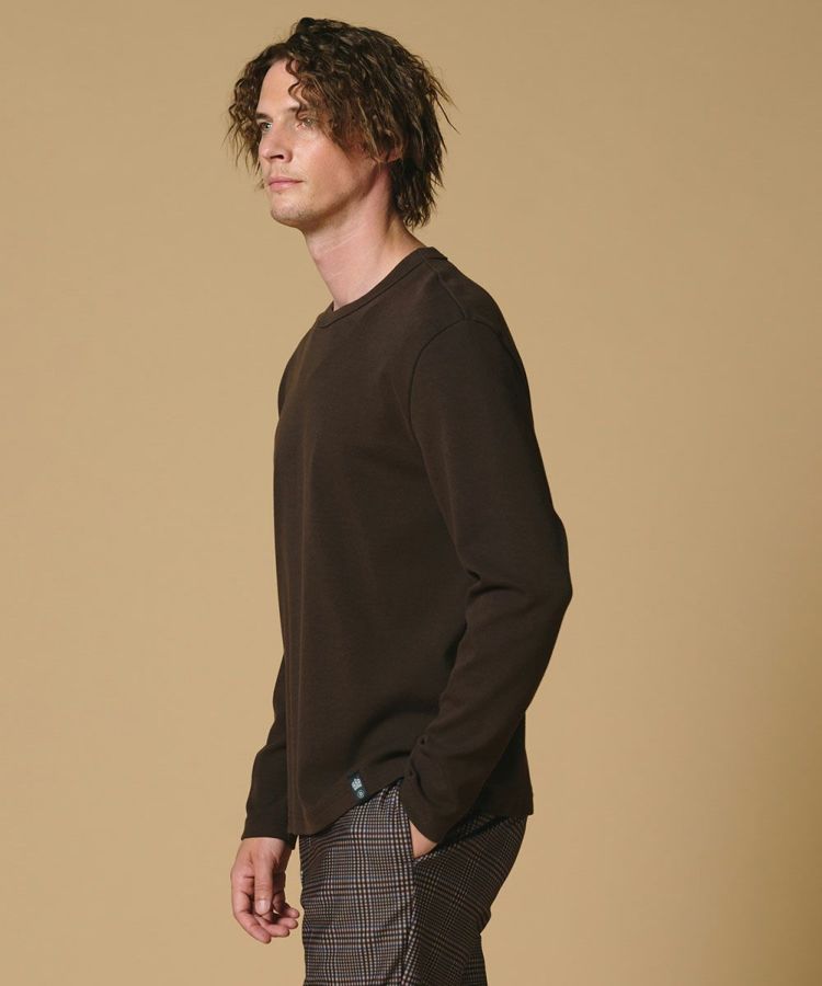 コットンとモダールをブレンドした柔らかい風合いのフライスTシャツ。エアリー感のある生地は、軽やかでストレッチ性にも優れているため、長時間着用しても快適な着心地を実現しました。肉厚な素材なので、透けることもなく安心して着用が可能に。シンプルな長袖Tシャツは、レイヤードスタイルのインナー使いとしてもおすすめです。