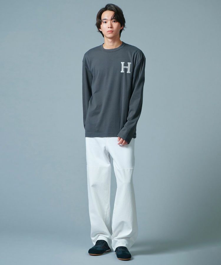 さらさらとした肌触りが心地良い、コットン100%で作ったシンプルなロングスリーブTシャツ。人気のTシャツに、待望のカラーバリエーションが登場しました。胸元の「H」のサガラ刺繍を施しアクセントで、首元がゆったりしているため窮屈感がないのが特徴。大きすぎず小さすぎない絶妙なサイズ感で、カジュアルながらもきれいめに着られます。デニムやスウェットはもちろん、スラックスに合わせてもサマになる一枚。