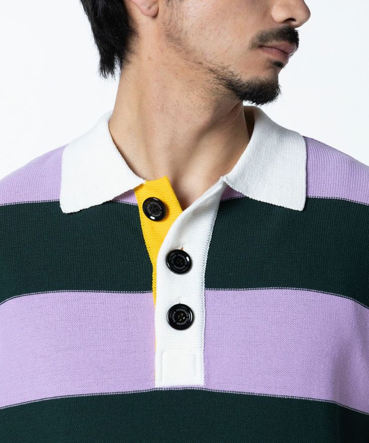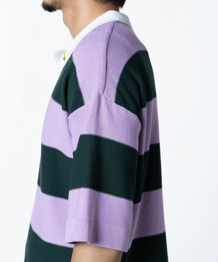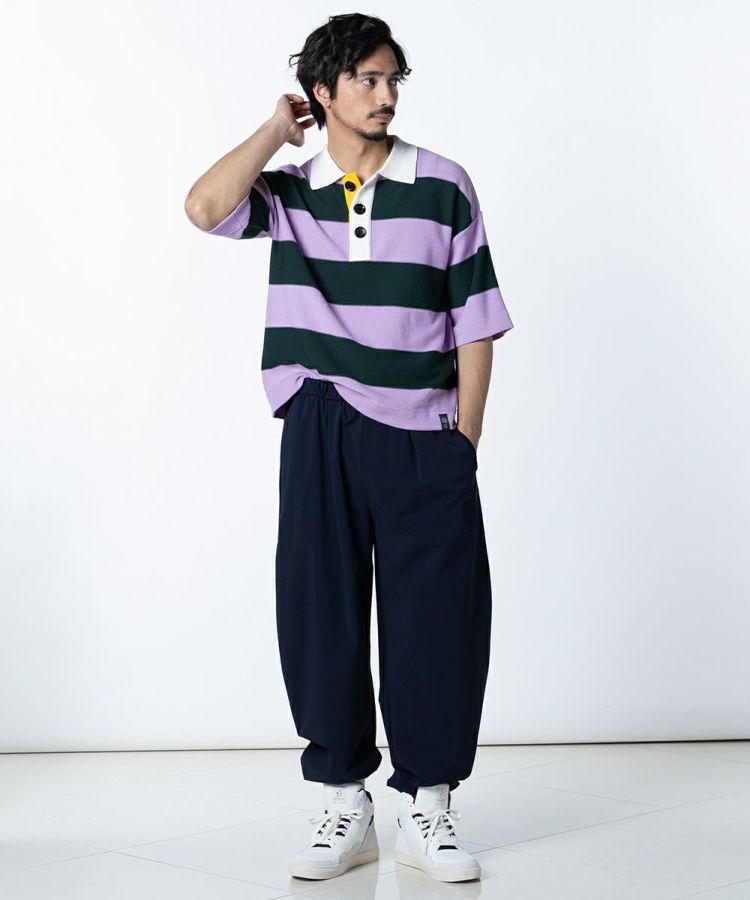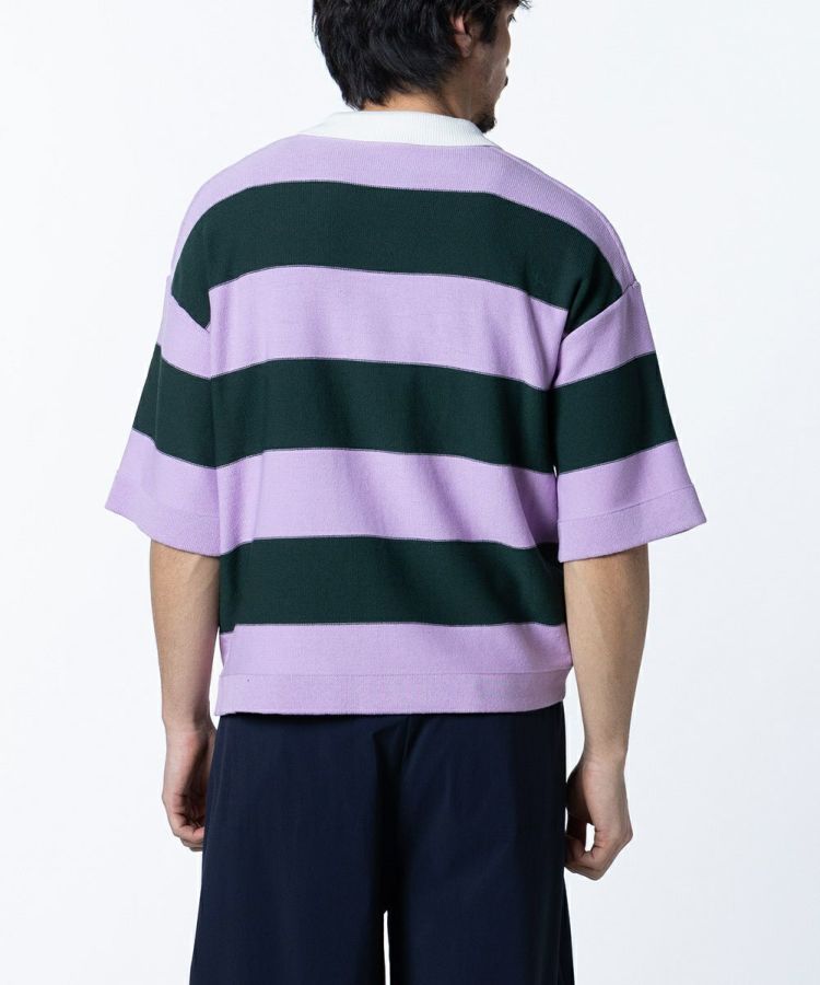 ポップな配色が目を引く、ボーダー模様のスキッパーニット。弾力とハリのある素材を使用し、素材を組み合わせることで軽くて柔らか、ストレッチ性と通気性も兼ね備えました。カジュアルな柄ながらも、伸びやかでリラックス感のあるシルエットにより、大人っぽく洒脱に着こなせるアイテムです。