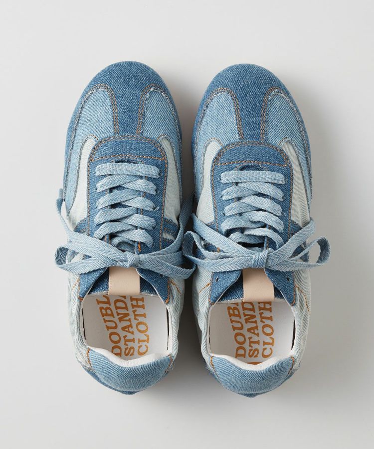 濃淡の異なるデニム生地を組み合わせた、クリエイティビティ溢れるスニーカー。ステッチのカラーもヴィンテージデニム風にすることで、唯一無二のデザインに仕上げました。爽やかなブルーのカラーリングのため、コーディネート全体を軽やかに演出してくれるのもうれしいポイント。シューレースもブルーにするなど、ディテールも抜かりなしです。