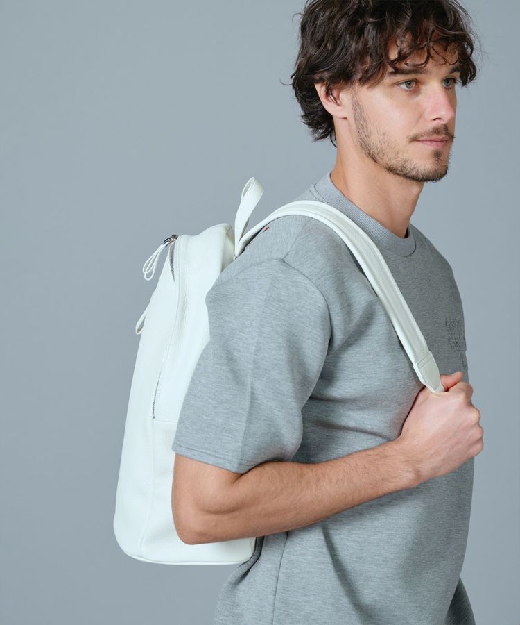 美しいシボ感が特徴のシュリンクレザーを使用したバックパック。独特の風合い楽しめるよう、ベーシックなデザインに仕上げました。A4サイズも収納可能の大容量で、普段使いはもちろん、マチがあるためオフィススタイルにも活躍。ジップの先にもレザーをあしらい、バックパックながらもシックに使えるのが魅力です。また、背負っていてもストレスにならない軽さもうれしいポイント!