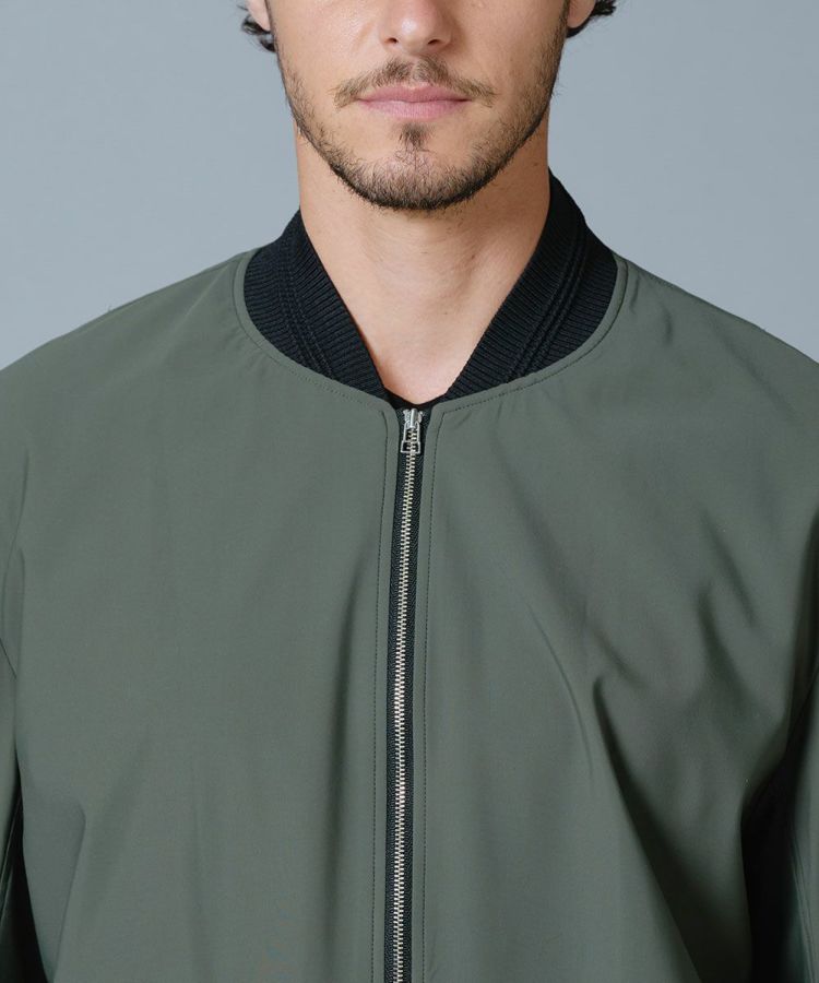 薄手で軽やかなコンチェロナイロンを使用した夏用ブルゾン。さらりと心地良い肌触りながら、接触冷感や紫外線防止機能を兼ね備えた高機能な一着に仕上げました。伸縮性にも優れた素材で、動きやすさもしっかりと配慮。襟や袖、裾がリブ仕様になっているためカジュアルになりすぎず、上品に着こなせるのも魅力です。