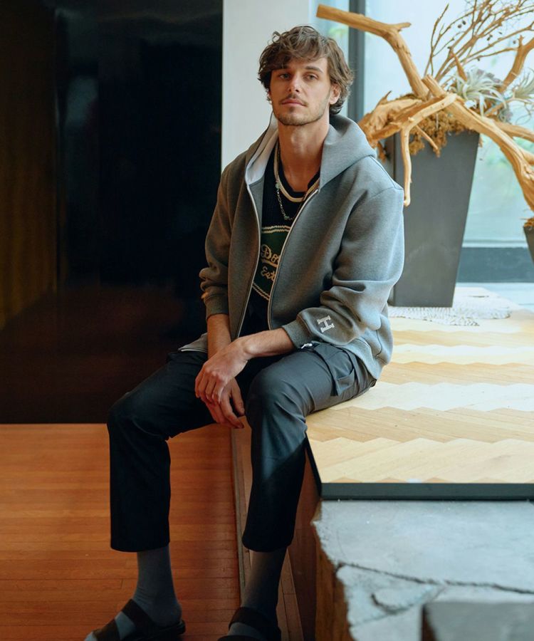 程よいハリのある生地感が上品な印象を与える、ダンボールニット素材のジップパーカー。Tシャツに合わせてもカジュアルになりすぎず、きれいめに着こなせます。袖先には「H」の刺繍を施し、さりげないアクセントをプラス。スタイリッシュなシルエットで、幅広いスタイリングが楽しめます。シワになりにくく、お手入れもカンタン。