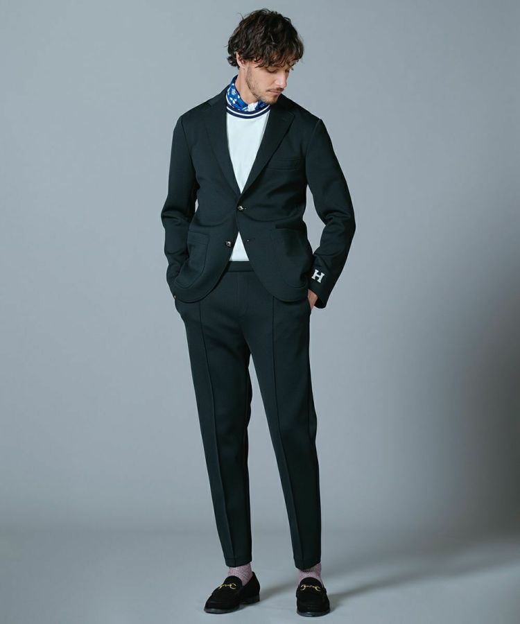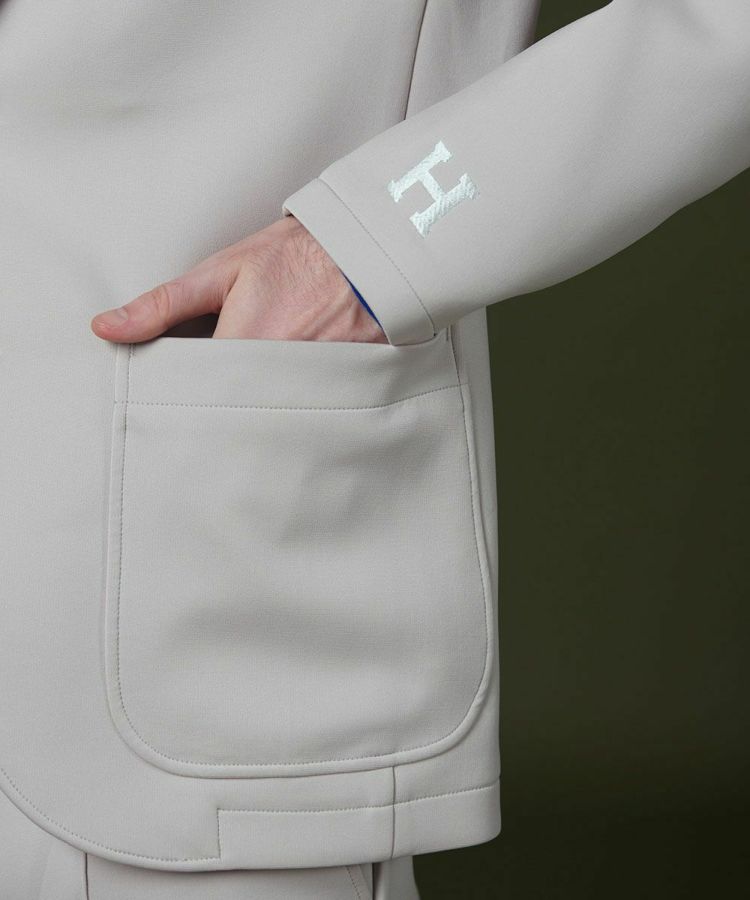程よいハリとなめらかな風合いが魅力のスキューバニット素材で仕立てたテーラードジャケット。高い伸縮性を備え、動きやすく快適な着心地を実現しました。袖口にあしらった「H」のワンポイント刺繍がさりげないアクセントに。オンオフ問わず取り入れやすく、日常からビジネスシーンまで幅広く活躍します。