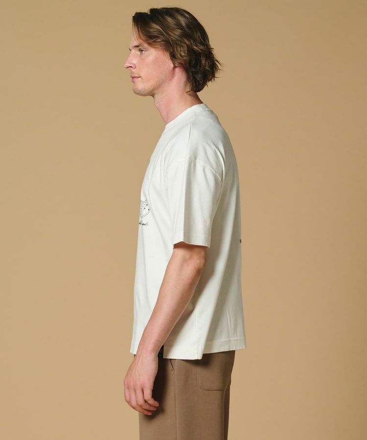 ダブスタで人気者ベアを近未来風に仕上げたグラフィックが印象的なTシャツ。素材はコットン100%を使用し、やわらかな肌触りが心地よい一枚です。シンプルなデザインなので、ボトムスを選ばず着回し力も抜群。遊び心たっぷりのTシャツは、コーディネートのアクセントとして活躍すること間違いなしです。