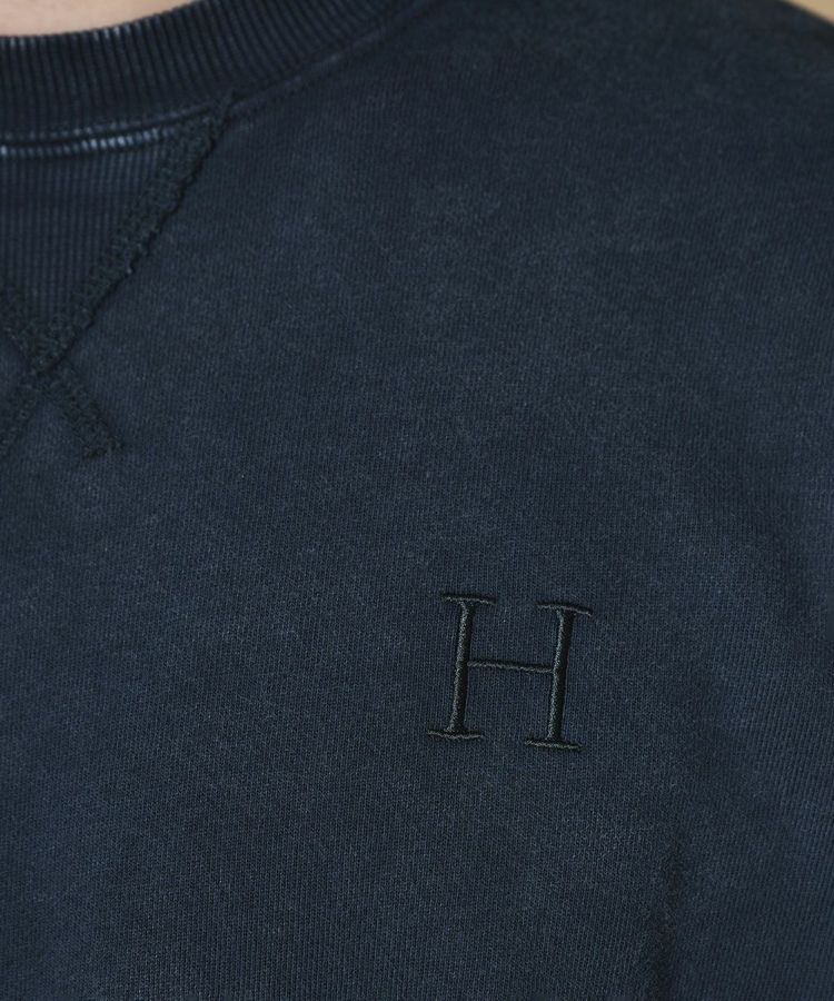 コットン100%の柔らかな肌ざわりが心地よいスウェット。インディゴ染めならではの深みのあるカラーで、どんなスタイリングにもなじみやすく、着回し力も抜群です。胸元には“H”の刺繍をあしらい、シンプルな中にさりげないアクセントをプラス。カジュアルにはもちろん、きれいめコーデにも取り入れやすいアイテムです。