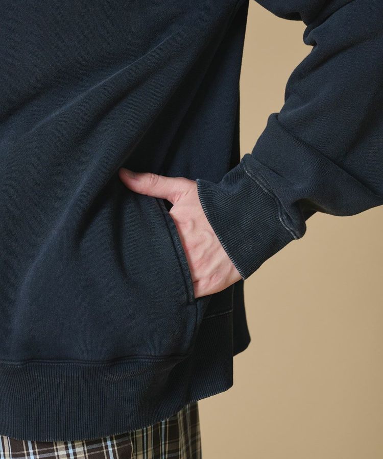 コットン100%の柔らかな肌触りが心地よいパーカー。インディゴ染めによる奥行きのある色合いが、ヴィンテージライクな風合いとこなれた雰囲気を演出します。羽織るだけで、カジュアルからきれいめまで幅広いスタイリングにマッチ。さらに、同素材のパンツ(型番:1706221253)とセットアップで着こなせば、大人らしい抜け感のあるスタイルが完成します。