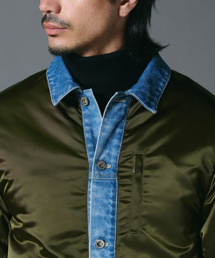 D/him ナイロンサテン×13ozデニムブルゾン