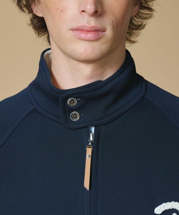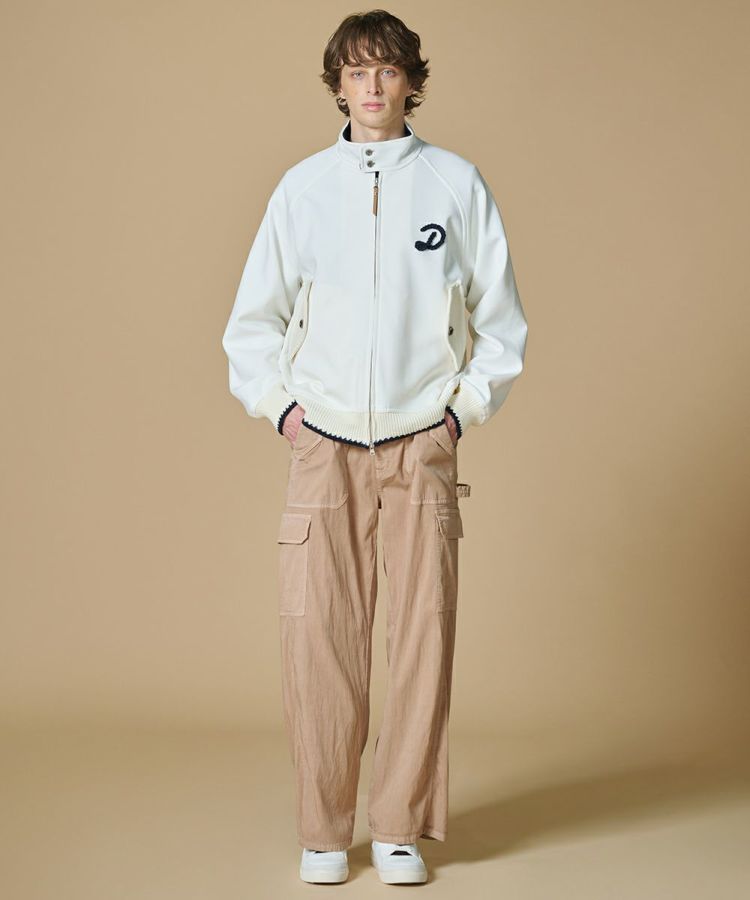 コットン100%のダンボール生地を使用した、軽やかで快適な着心地のブルゾン。裾のリブやポケット上部、衿裏にニット糸をドッキングさせ、さりげないデザイン性をプラスしました。胸元にはブランド頭文字の「D」をロープ刺繍であしらい、程よいアクセントに。季節の変わり目にも重宝し、ロングシーズン活躍する一着です。