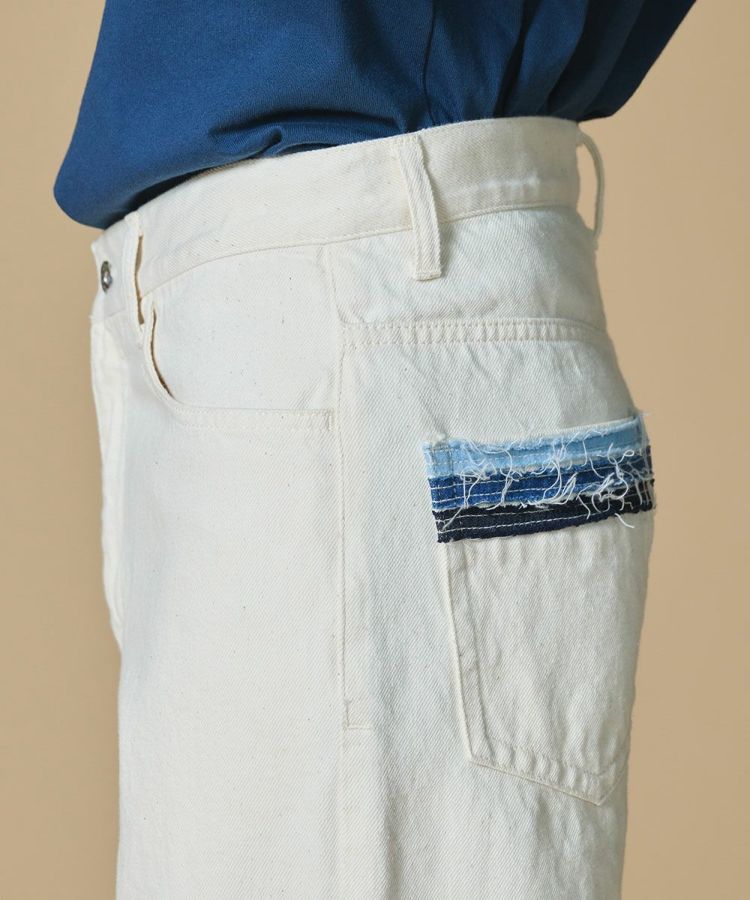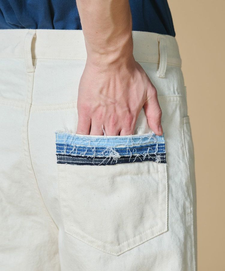 ベーシックなシルエットをベースに、ディテールまで丁寧に仕上げたデニムパンツ。綿本来の自然な生成り色を活かし、甘織りならではの柔らかな風合いと心地よい穿き心地を実現しました。バックポケットにはさりげないアクセントを施し、後ろ姿にも個性をプラス。同素材のジャケット(型番:0705150261)と合わせれば、こなれ感のあるデニムセットアップスタイルが完成します。