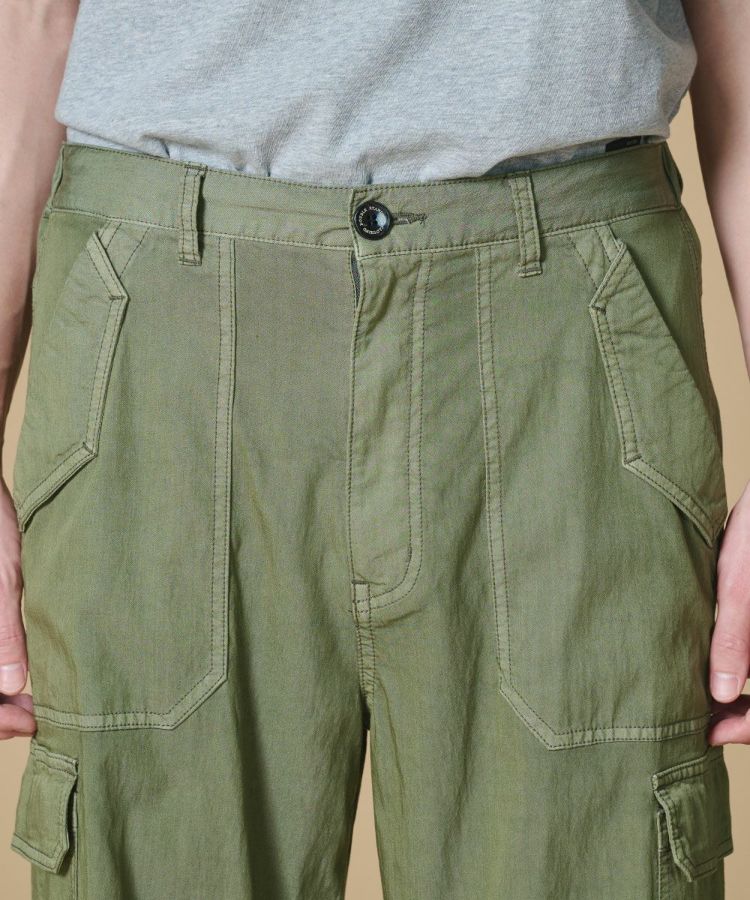 ナチュラルな風合いが魅力のカーゴパンツ。二浴染めの技法を用い、テンセル混素材ならではの滑らかな落ち感が、こなれた印象を演出します。程よくゆとりのあるシルエットで、リラックス感と上品さを両立。カジュアルになりすぎず、きれいめなスタイリングにも対応し、Tシャツを合わせるだけで洗練された着こなしが完成する一本です。
