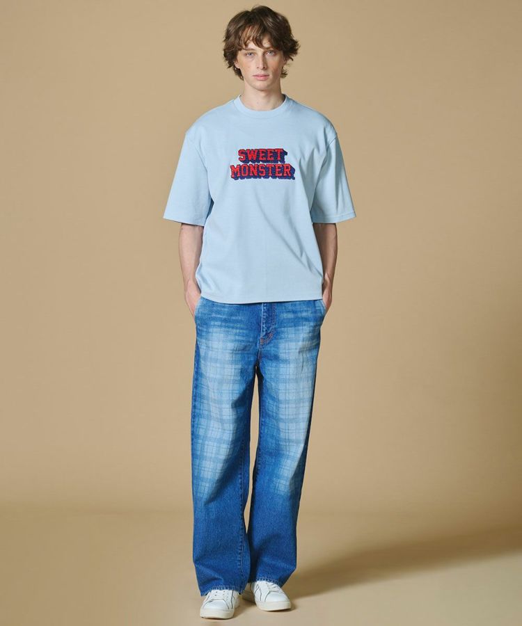 トレンド感のあるショート丈に、ヴィンテージライクなロゴをあしらったTシャツ。糸設計と編み技術にこだわり、強撚糸ながら斜行を抑えたオリジナル素材を使用しました。さらに特殊シルケット加工を施すことで、ほどよいハリ感と毛羽のないクリアな表情を実現。ベーシックで着回しやすいオフホワイトと、爽やかな印象のサックスブルーの2色展開で、デイリーに活躍する一着です。