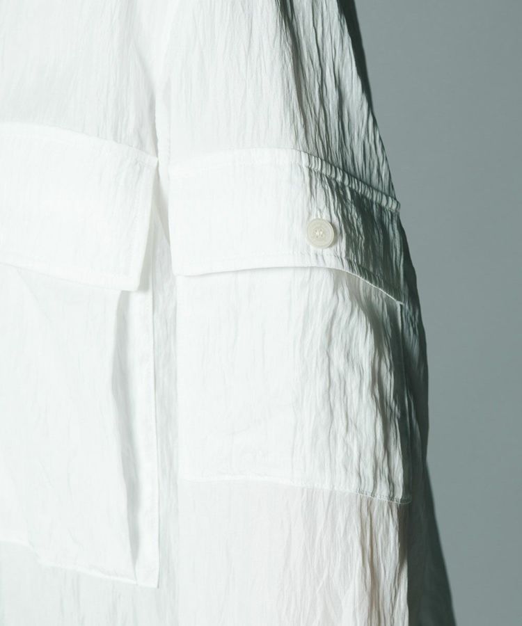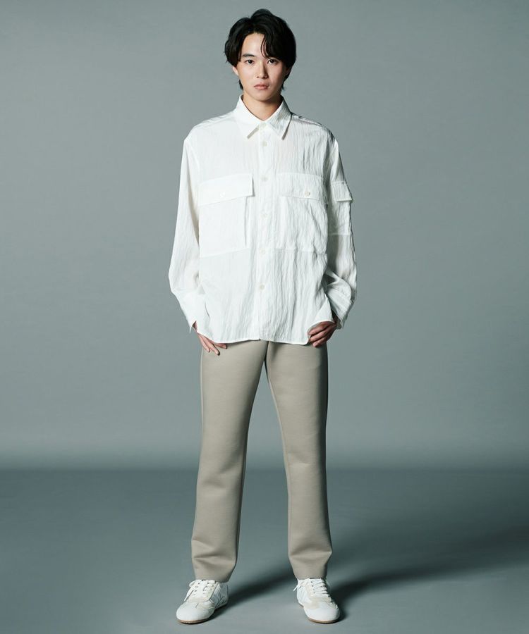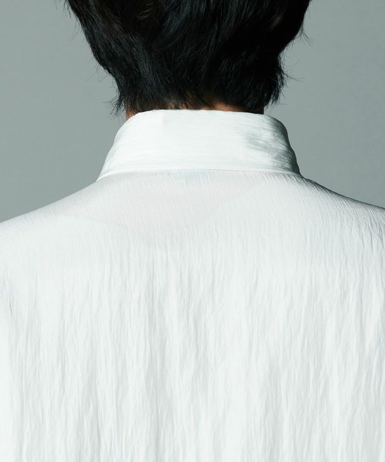 ゆったりとしたサイズ感で、リラクシンな印象で着こなせるシャツ。経糸にレーヨン、緯糸にナイロン分繊糸を使用した素材で、ツイル組織を裏使いすることで、まるでフィルム糸を使用したような透明感のある光沢を実現しました。柔らかで風合いのある生地によりカジュアルになりすぎず、気軽に羽織れて大人のこなれ感を演出できる一枚です。