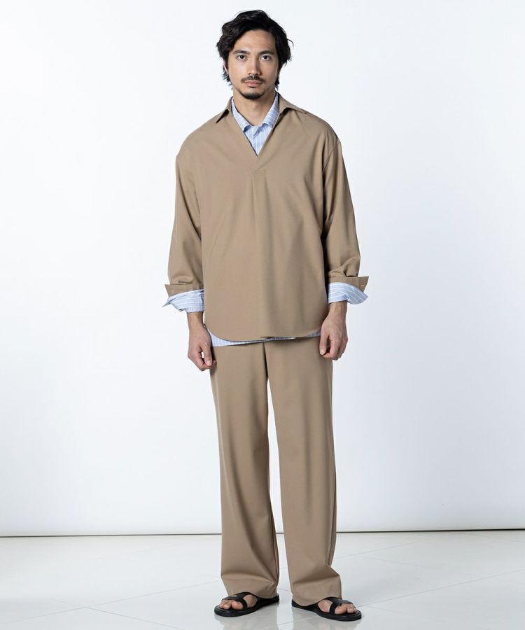 リラクシンでありながら、上品な印象を与えるスキッパーシャツ。VIS素材で世界トップクラスのクオリティを生み出す、ポルトガルのRIOPELE社のCERAMICA©生地を使用しています。ゆったりとしたリラクシンなシルエットながらも、スーパーファイン梳毛のような美しい表面感としなやかな風合いが優雅で、さらりとしたタッチは他に類を見ない完成度に仕上がりました。
