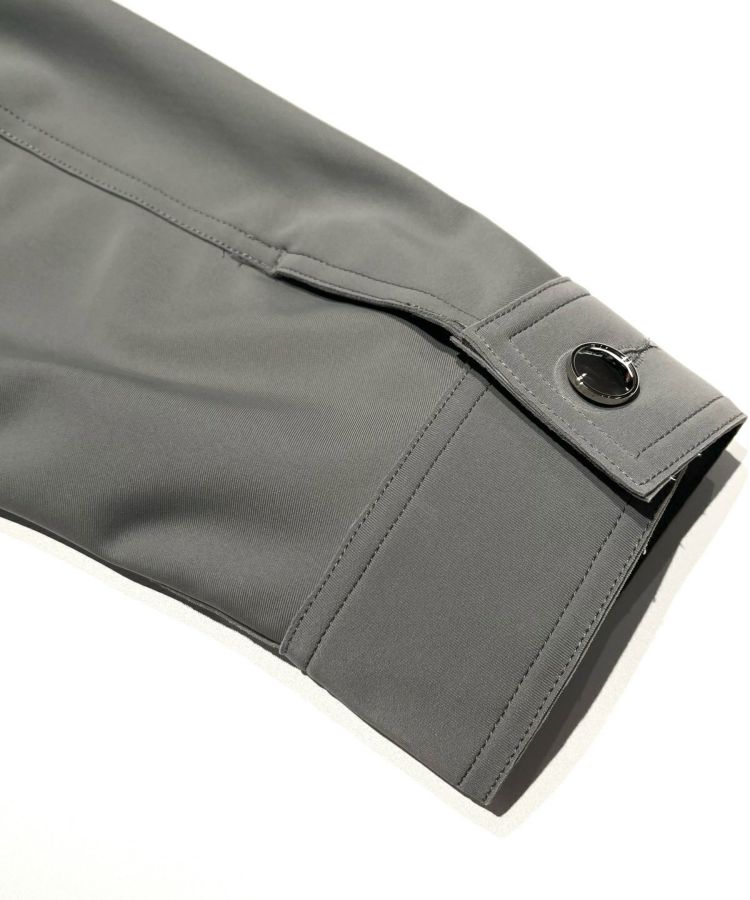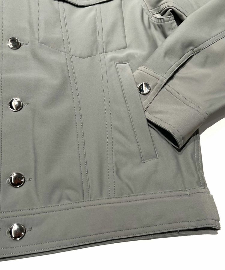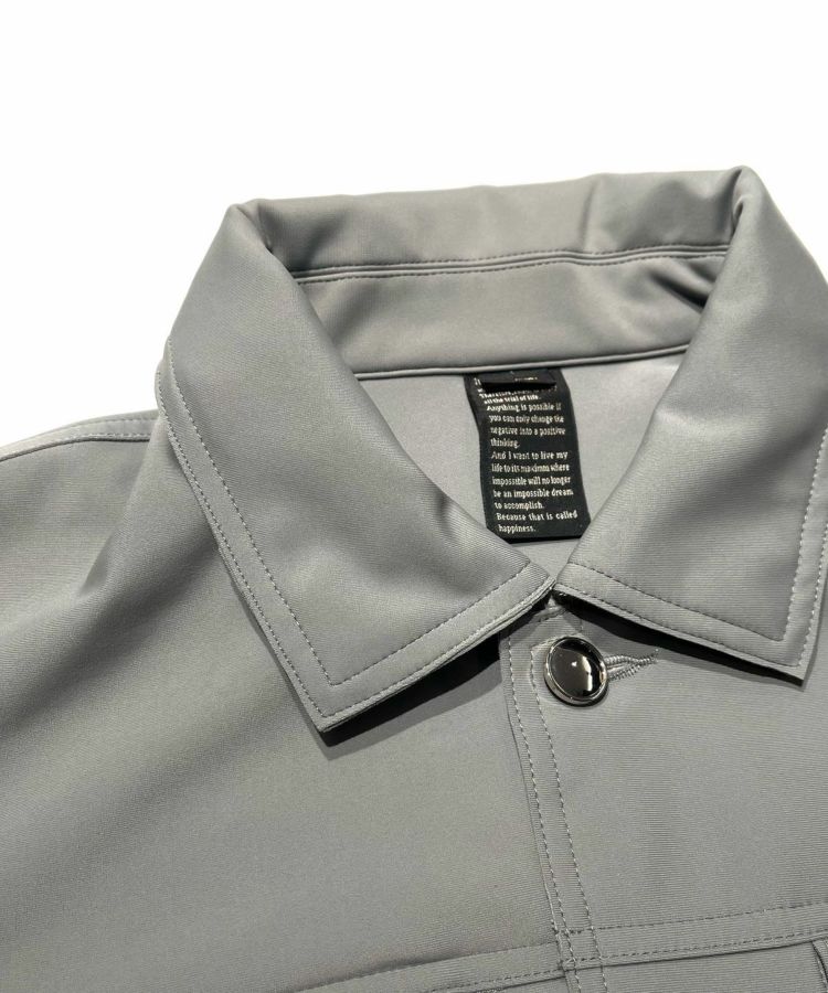 シワになりにくく、ストレッチが抜群に効いたオリジナル素材を使用したトラッカージャケット。ボンディング加工という生地を張り合わせる事でハリ感と厚みがあり立体的に見えるのが特徴です。ショート丈による着丈の短さを利用したレイヤードによる着こなしを楽しんで頂けるトレンド感のあるシルエットに。生地に光沢感があるのでキレイめなカジュアルスタイルにおすすめの一着です。