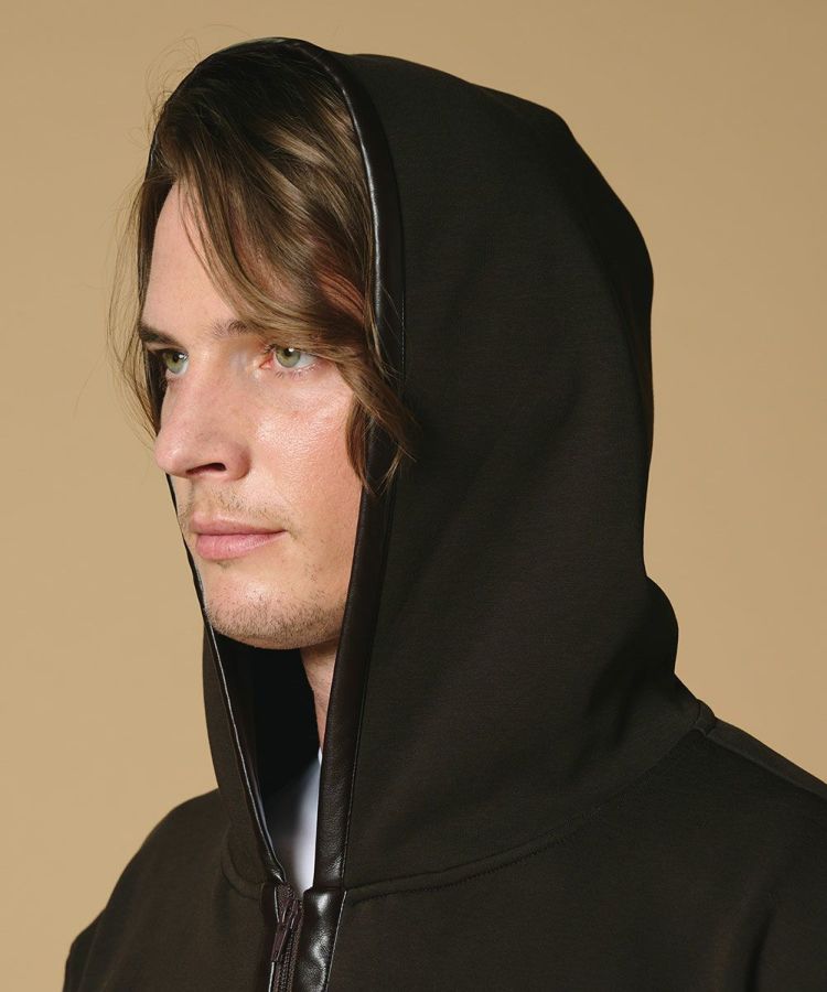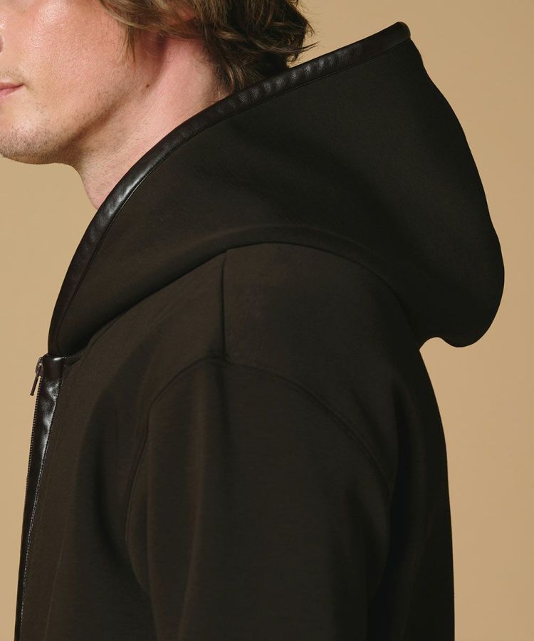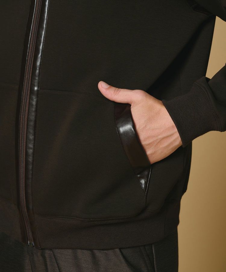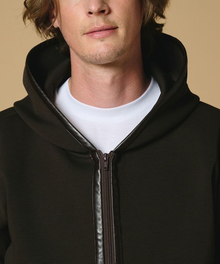 D/him レザーパイピング ストレッチジップパーカー