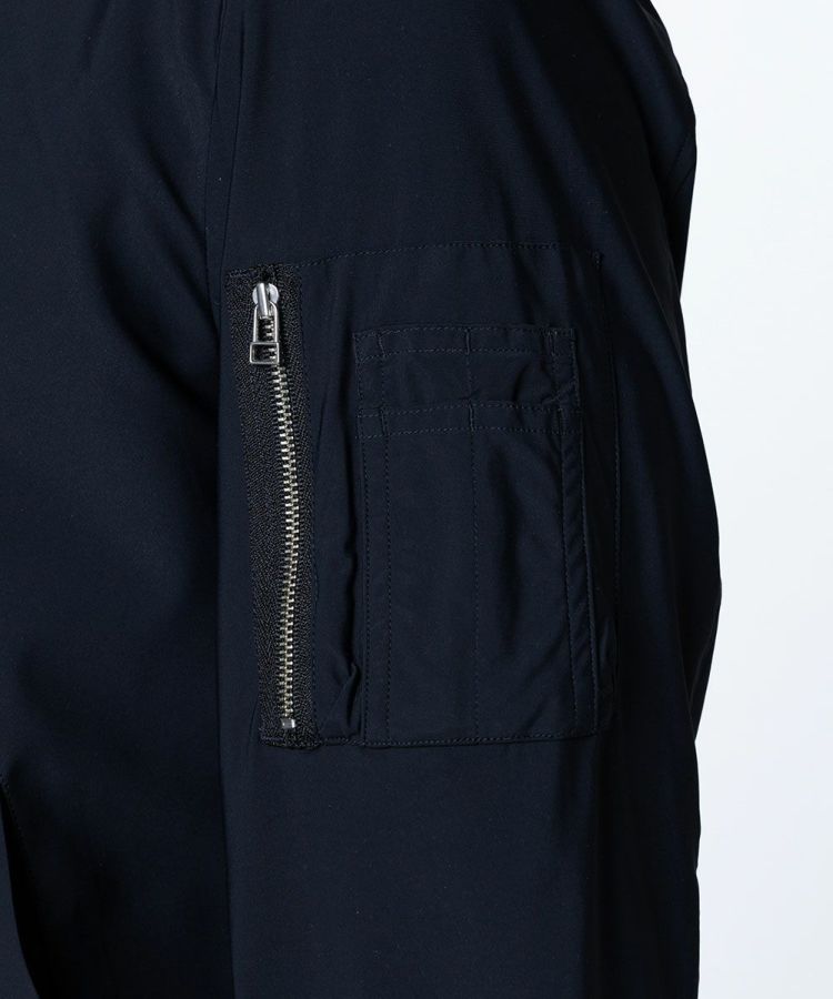薄く、軽やかな素材を使用した夏用のブルゾン。身体の動きを邪魔しない、適度なストレッチ性があります。さらりとした心地良い肌触りでありながら、接触冷感や紫外線防止機能を兼ね備えているのがポイント。襟や袖、裾がリブ仕様になっているためカジュアルになりすぎず、きれいめに着られるのも魅力です。