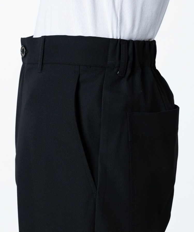 ハイウエストですっきりと仕上げたワイドパンツ。バックウエストゴムでリラクシンな穿き心地でありながら、きれいなシルエットを実現しました。また、VIS素材で世界トップクラスのクオリティを生み出すポルトガルのRIOPELE社のCERAMICA©生地を使用。スーパーファイン梳毛のような美しい表面感としなやかな風合い、さらりとしたタッチが魅力になっています。