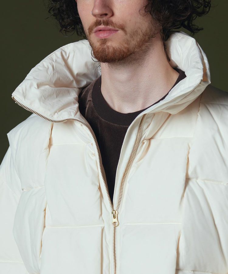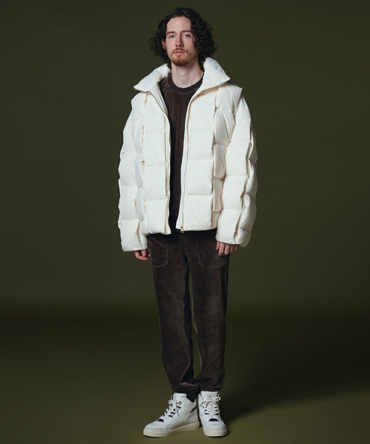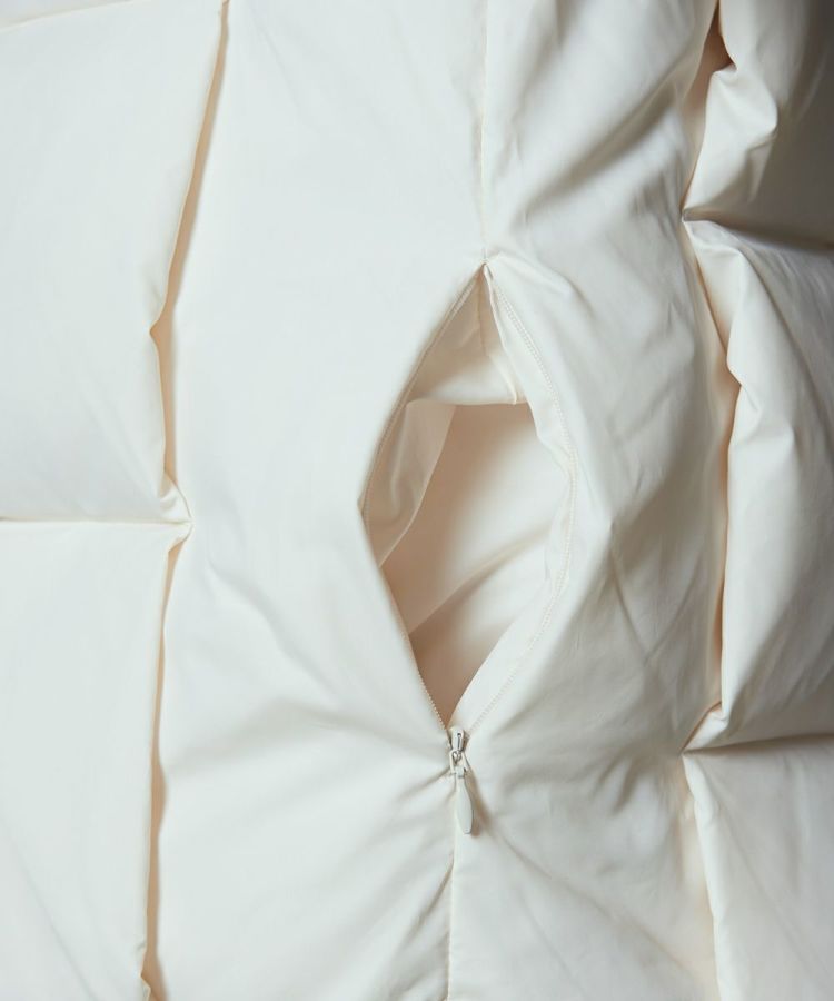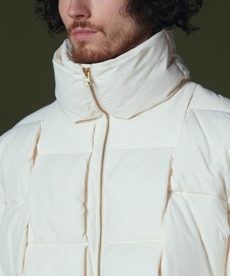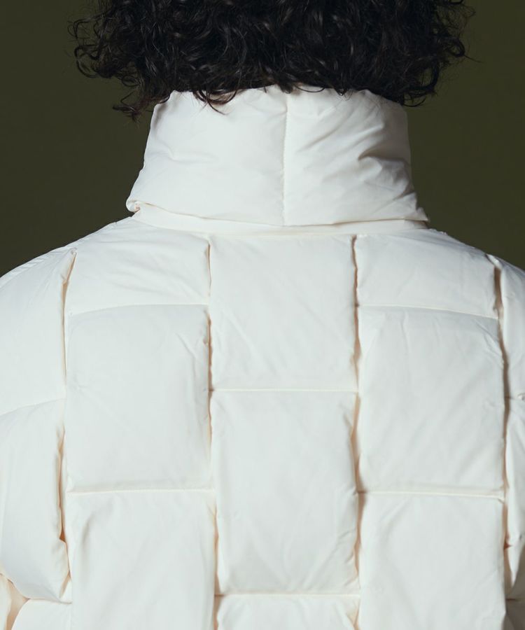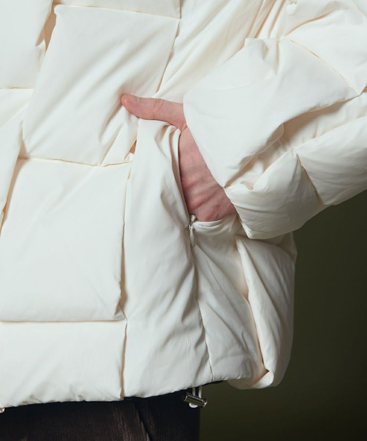 ふんわりと軽量で暖かなダウンジャケット。イントレチャートの技法でデザイン性を高め、インパクトのある一着に仕上げました。その分、他のデザインはシンプルにして大人っぽく。ややゆったりとしたシルエットで、インナーを問わず着られるのも魅力です。ジップを開閉することで着こなし方をアレンジできます。