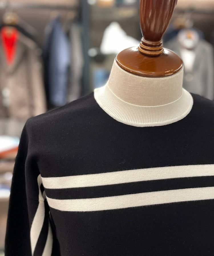 また、SNOWYと同様にウールを混合していないニットなので、さらりとしたタッチでシーズンレスでご着用いただけるのもポイントです。キャッチーな配色はスポーティーな印象を与え、スニーカースタイルとも相性の良い一着に仕上がっております。