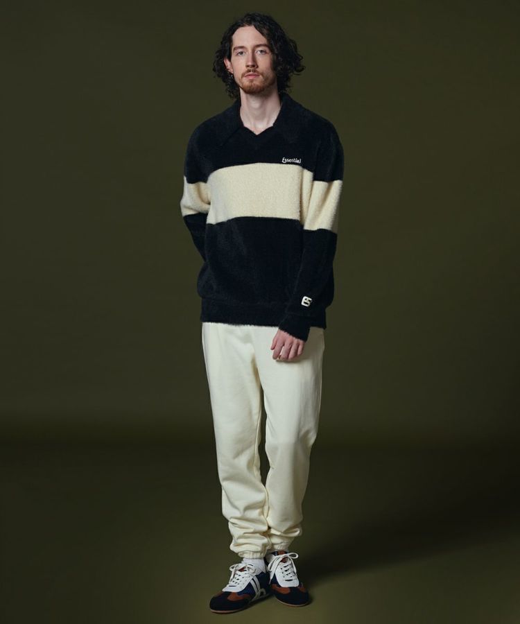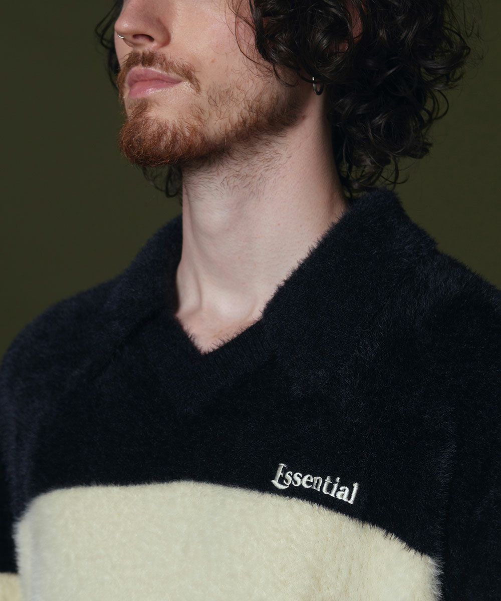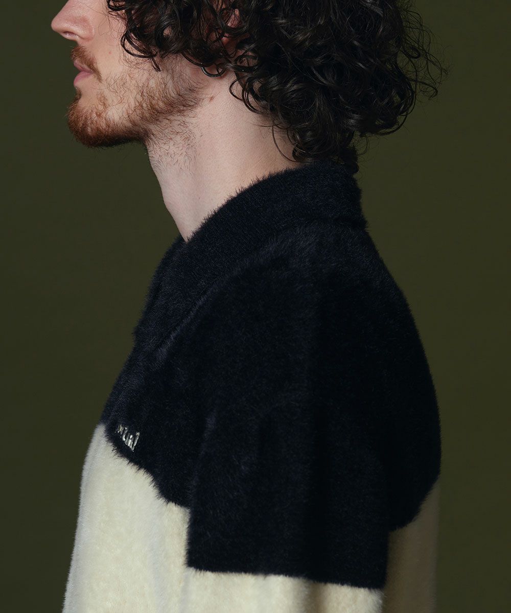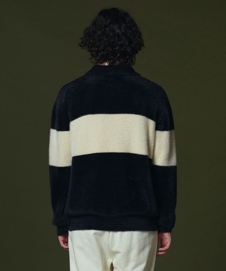 ふわふわとした毛足の長いシャギーモールを使用したニットトップス。着用していてとても気持ちが良く、思わず触れたくなるような柔らかな見た目も特徴です。きれいな落ち感があり、ゆったりとしたシルエットのボーダーアイテムながらも上品に着られるのが魅力。襟付きにすることで、襟元をすっきり演出してくれるのもポイントです。