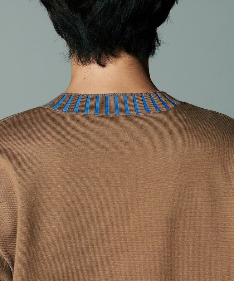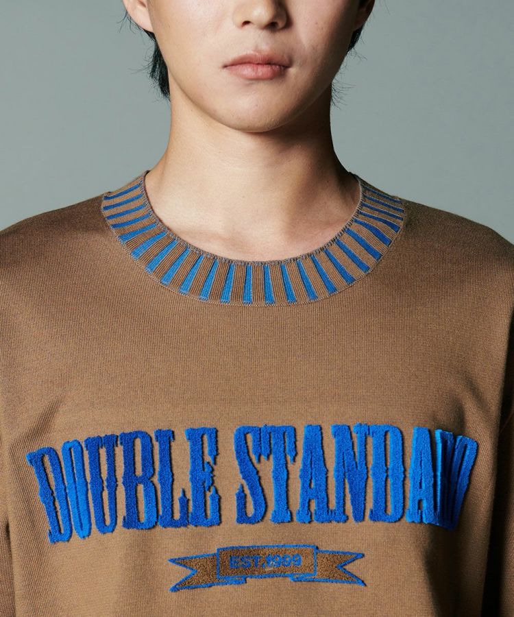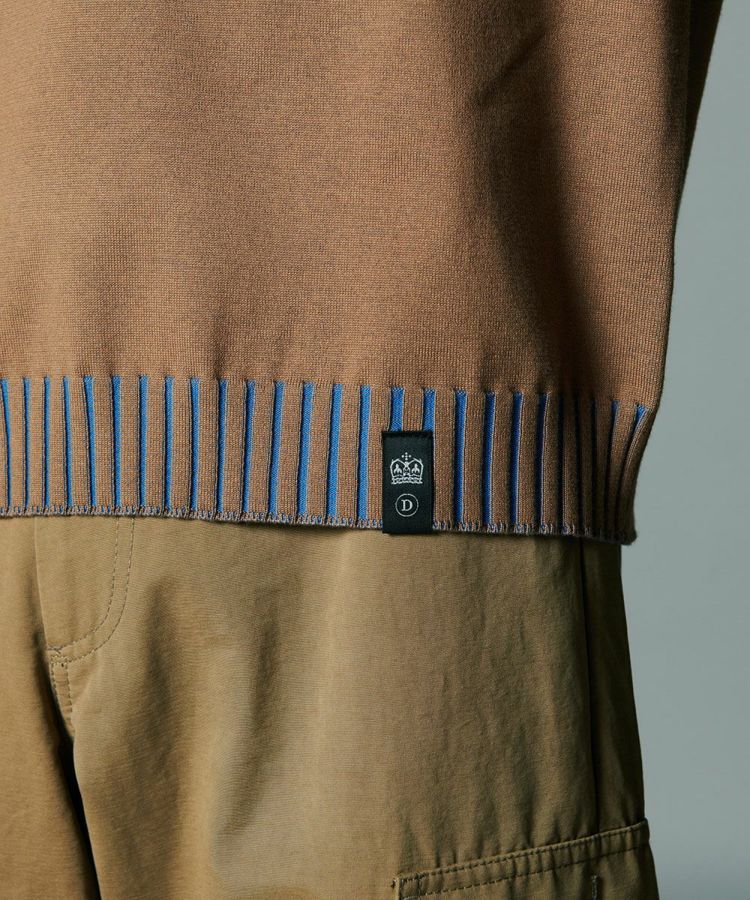 ダブスタの今季のテーマであるロイヤルブルーを編み込んだ、カジュアルなニットトップス。超繊維のコットンを使用した素材でカシミヤのような風合いに限りなく近づけ、上品な印象に仕上げました。メリハリのある配色も特徴で、シンプルなボトムにさっとプラスするだけで大人カジュアルなコーディネートが決まる一枚です。