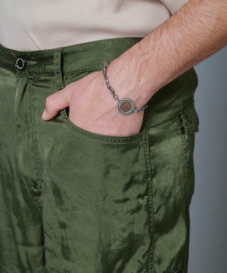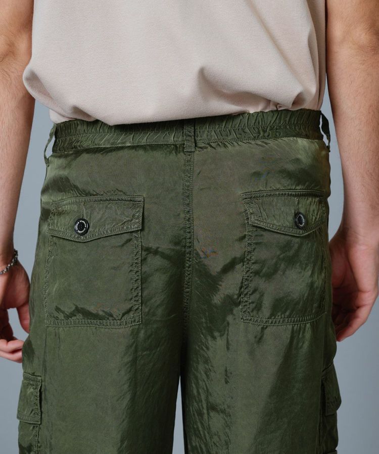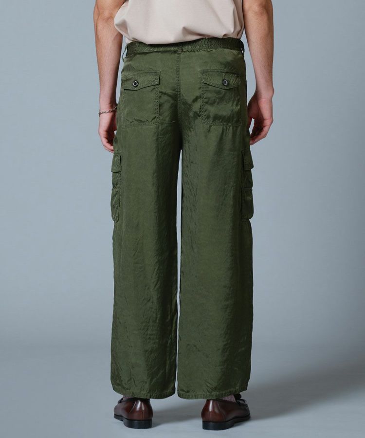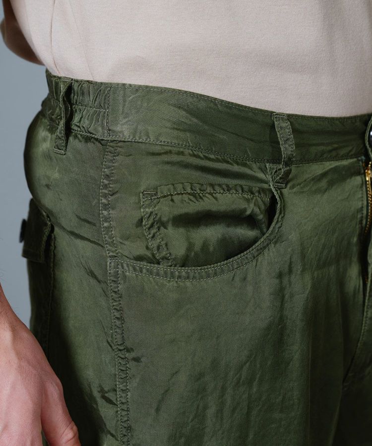 絶妙な光沢感が上品さを引き立てる、キュプラ素材のカーゴパンツ。シルクのような滑らかな質感に、さりげなくヴィンテージ感を加えることで、大人の余裕を感じさせる一本に仕上げました。カラーは、スタイリングに取り入れやすい定番のカーキと、柔らかい印象を与えるベージュの2色展開。足元にサンダルを合わせれば、こなれた夏のカジュアルコーデが完成します。