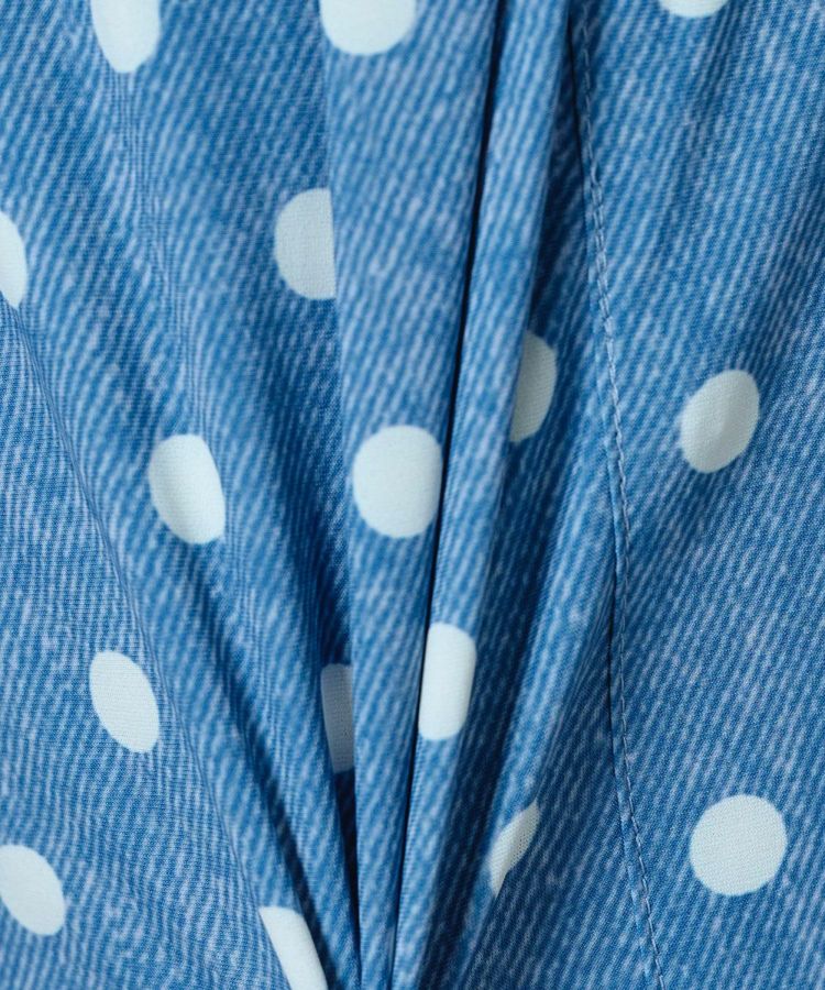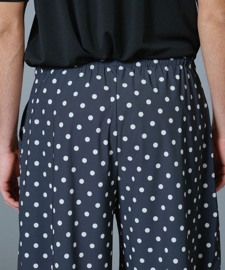 ドット柄が目を惹く、デザイン性に優れたハーフパンツ。ポリエステルトリコットン素材にプリントを施し、接触冷感や吸水速乾といった機能性が高い点も魅力的です。トップスをタックインすれば、ウエストのリボンがさりげないアクセントになって、きれいめな印象に。同素材のシャツ(型番:0704050253)と合わせると、爽やかな夏のセットアップコーデが完成します。