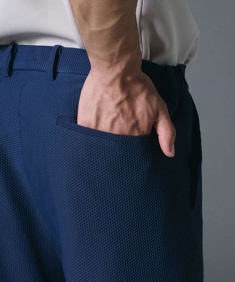 360°ストレッチのメッシュ素材を使用した、快適な履き心地のスラックス。脚のラインを美しく見せるテーパードシルエットで、全体をすっきりとした印象に仕上げてくれます。通気性も良く、暑い季節でも快適に過ごせるのも嬉しいポイント。同素材のジャケット(品番:1705050253)と合わせれば、ビジネスシーンにも対応できるセットアップスタイルが完成します。