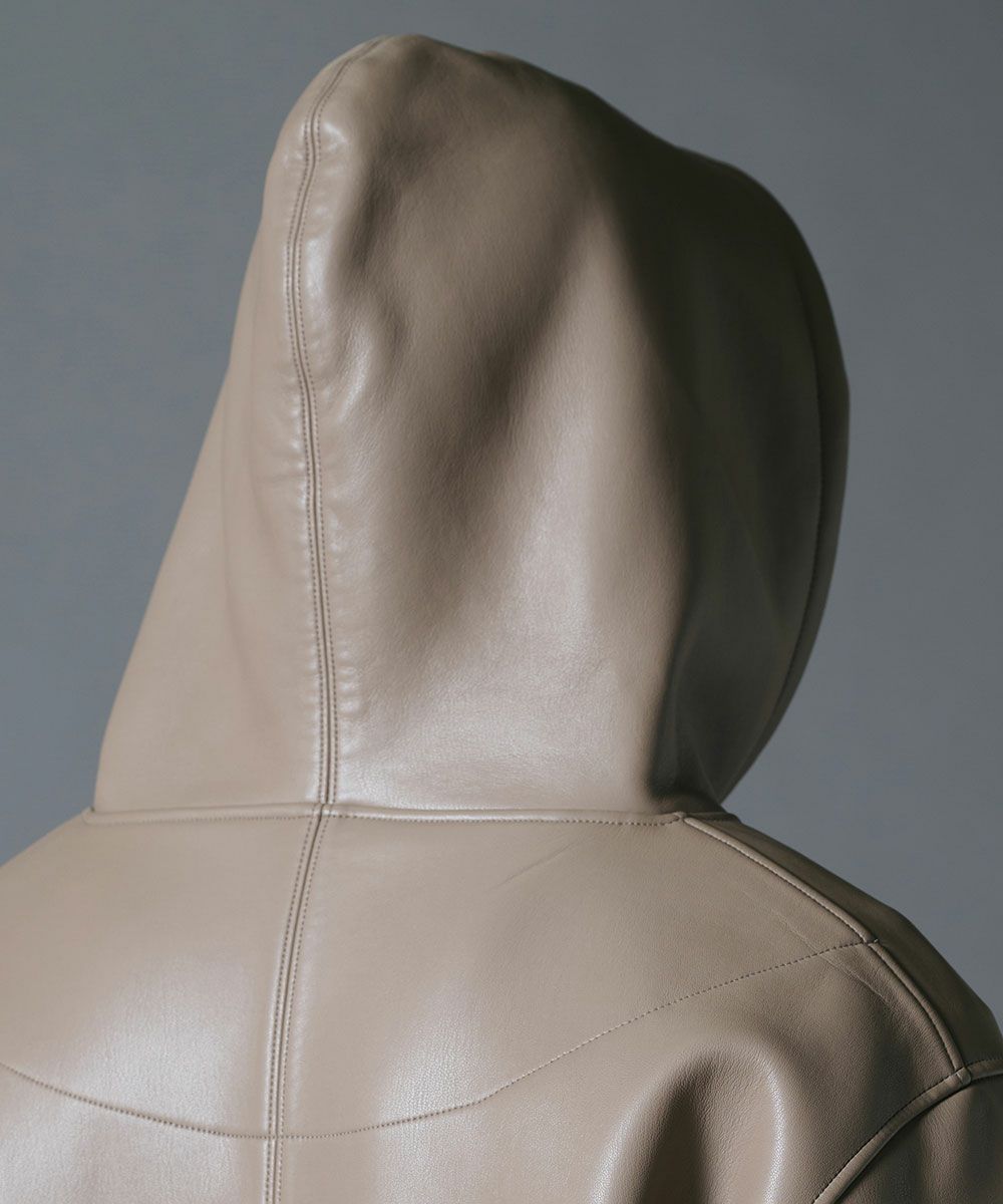 D/him Hエンボス刺繍 レザーダンボールジップパーカー