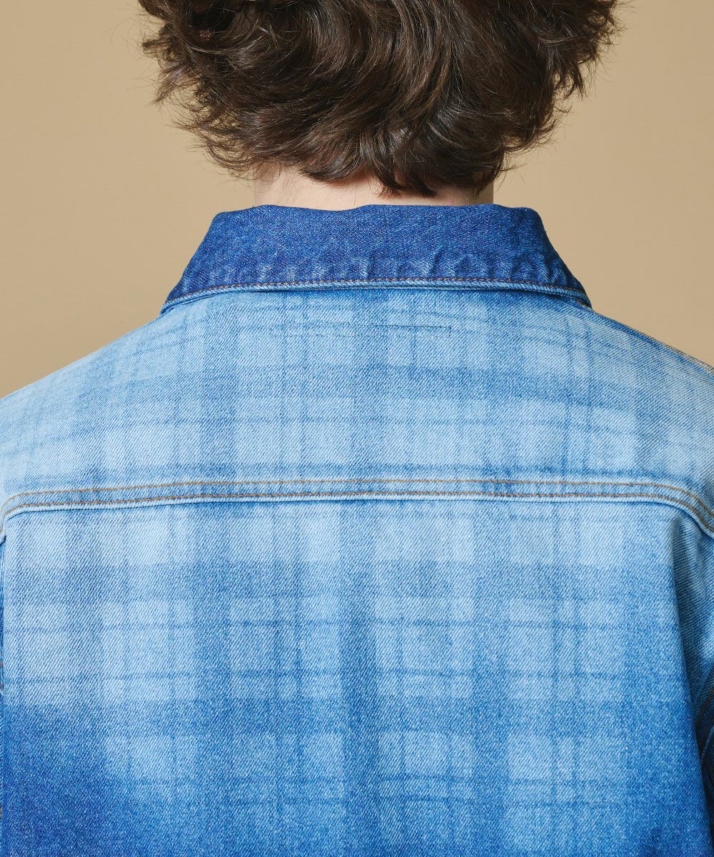 D/him 12.5oz. チェックプリントデニムジャケット