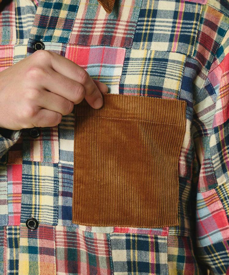 インドの伝統的なマドラスチェックを使用した、パッチワークデザインの長袖シャツ。一つひとつ熟練の職人によって丁寧に縫い合わせた、手仕事の温もりを感じられるこだわりの一枚です。起毛ネル素材を採用し、秋冬シーズンにぴったりの仕上がりに。存在感のあるデザインは、シンプルなカーゴパンツやデニムとの相性が抜群です。