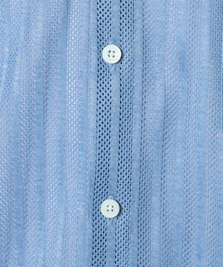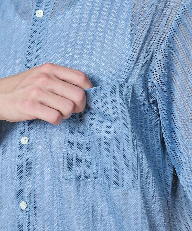 程よい透け感が涼やかな印象を与えるストライプシャツ。特殊な編み機で仕立てたメッシュジャカード素材を使用し、通気性に優れた快適な着心地を実現しました。カラーは、爽やかなブルー、使い勝手の良いグレー、ブラウンの3色展開。ボタンを留めればきれいめに、開ければ抜け感のあるスタイリングを楽しめる一枚です。