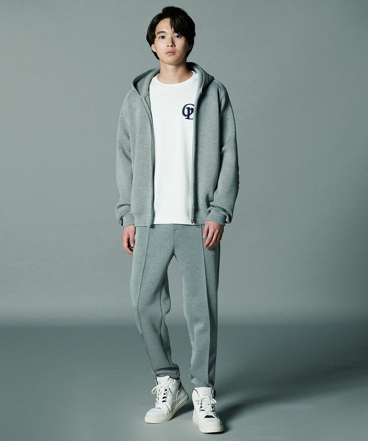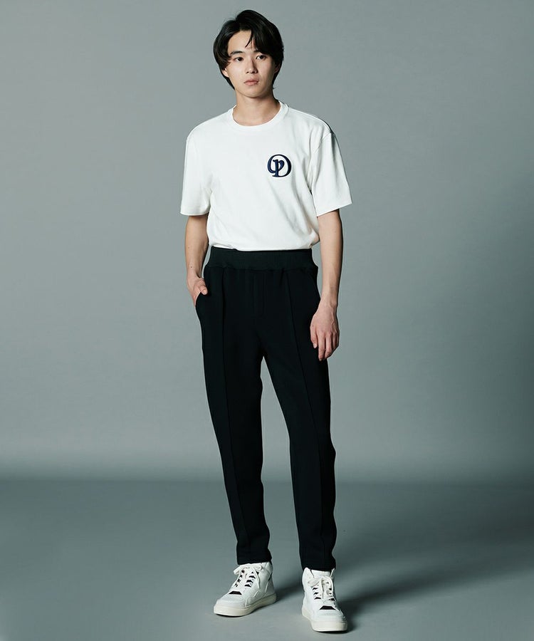 しっかりとした落ち感のあるダンボール生地を使用したパンツ。ウエストゴムで着脱が楽チンなだけでなく、ダンボールニットの心地良い穿き心地と軽やかさが魅力です。ポイントは、すっきりとした細めシルエット。センタープレスのデザインが縦のラインを出し、リラクシンな穿き心地ながらもスタイリッシュな佇まいを叶えてくれます。