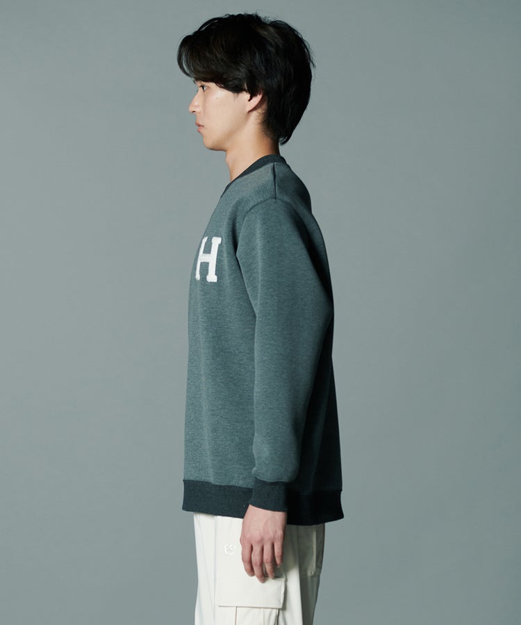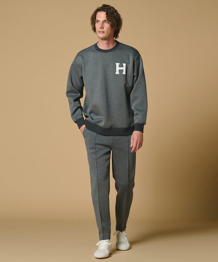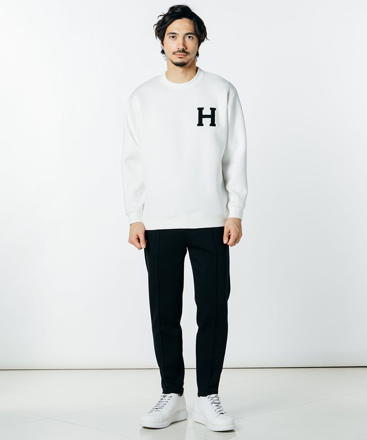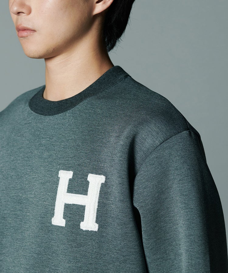 独特の柔らかな膨らみがリラクシンな印象を与えるダンボールニットのトップス。なめらかな表面感と上品な光沢感があり、カジュアルになりすぎずきれいめに着られるのが魅力です。程よくゆとりを残しながらも、すっきりとしたシルエットに仕上げているのもポイント。胸元のHのワッペンがアクセントになっています。